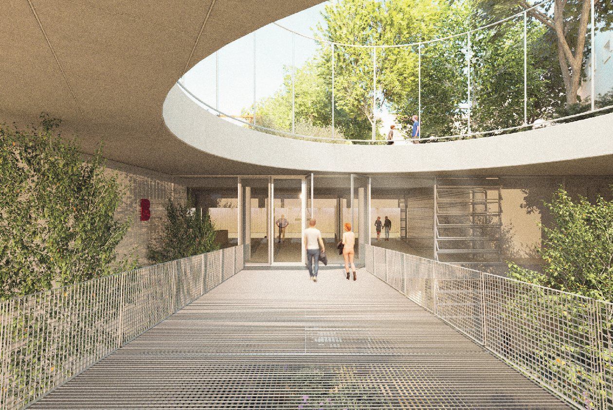 Recreació virtual de l’accés al parvulari de l’Institut Escola Xirinacs i al pavelló des del carrer de Provença, elaborada per l’equip adjudicatari de la redacció del projecte executiu.