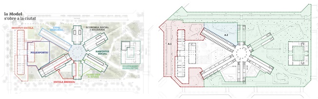 Amb aquests dos encàrrecs de redacció dels dos documents, amb un cost total de 1,3M€, s’activa la transformació de l’antic centre penitenciari en un gran pol d’equipaments i espai verd de l’Esquerra de l’Eixample, seguint les línies estratègiques del projecte d’ordenació del conjunt, elaborat el 2022, amb l’equip de la proposta guanyadora ‘Model, batega!”, el qual fa compatibles l’habitatge públic dotacional i els set equipaments públics compromesos amb la conservació del patrimoni dins d’un futur gran parc urbà.