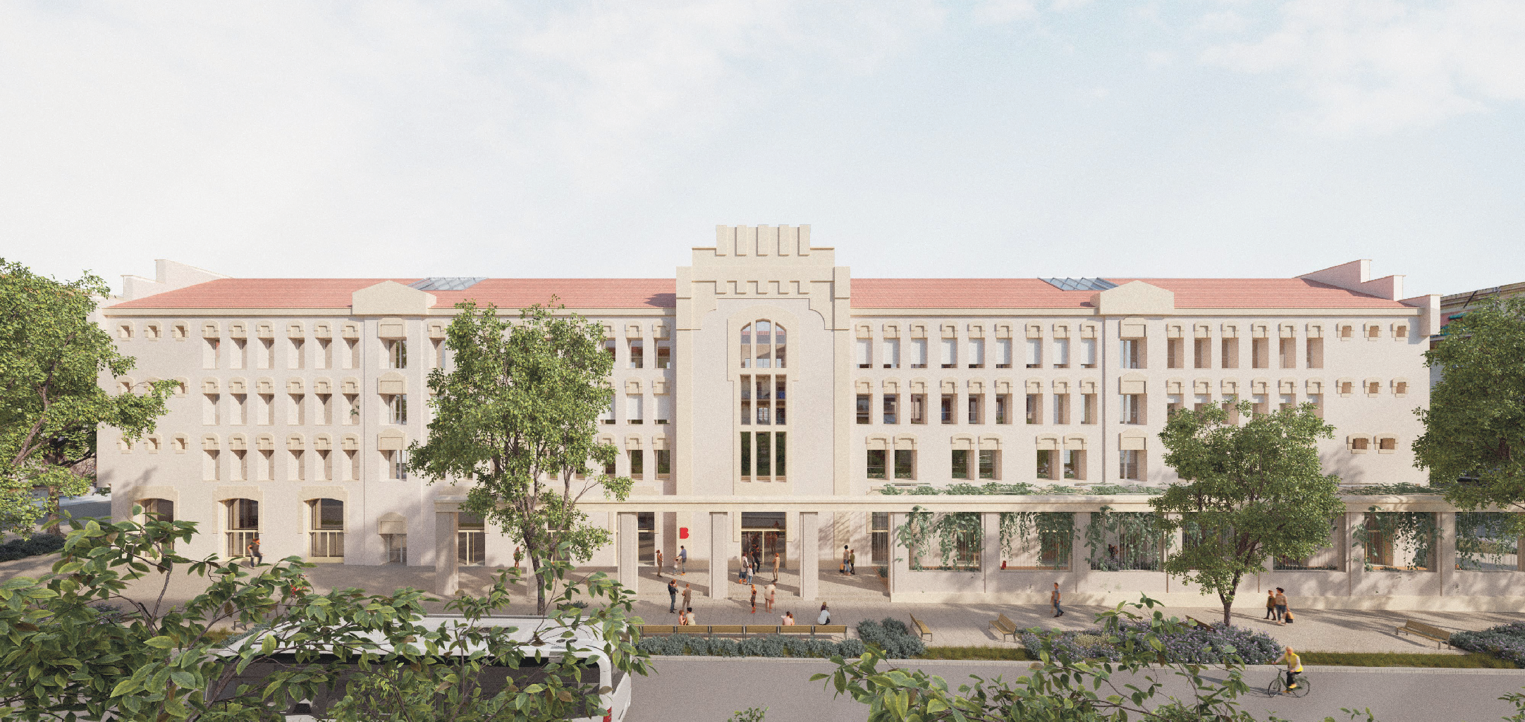 Recreació virtual de la façana de l’institut escola al carrer de Nicaragua, elaborada per l’equip adjudicatari de la redacció del projecte executiu.