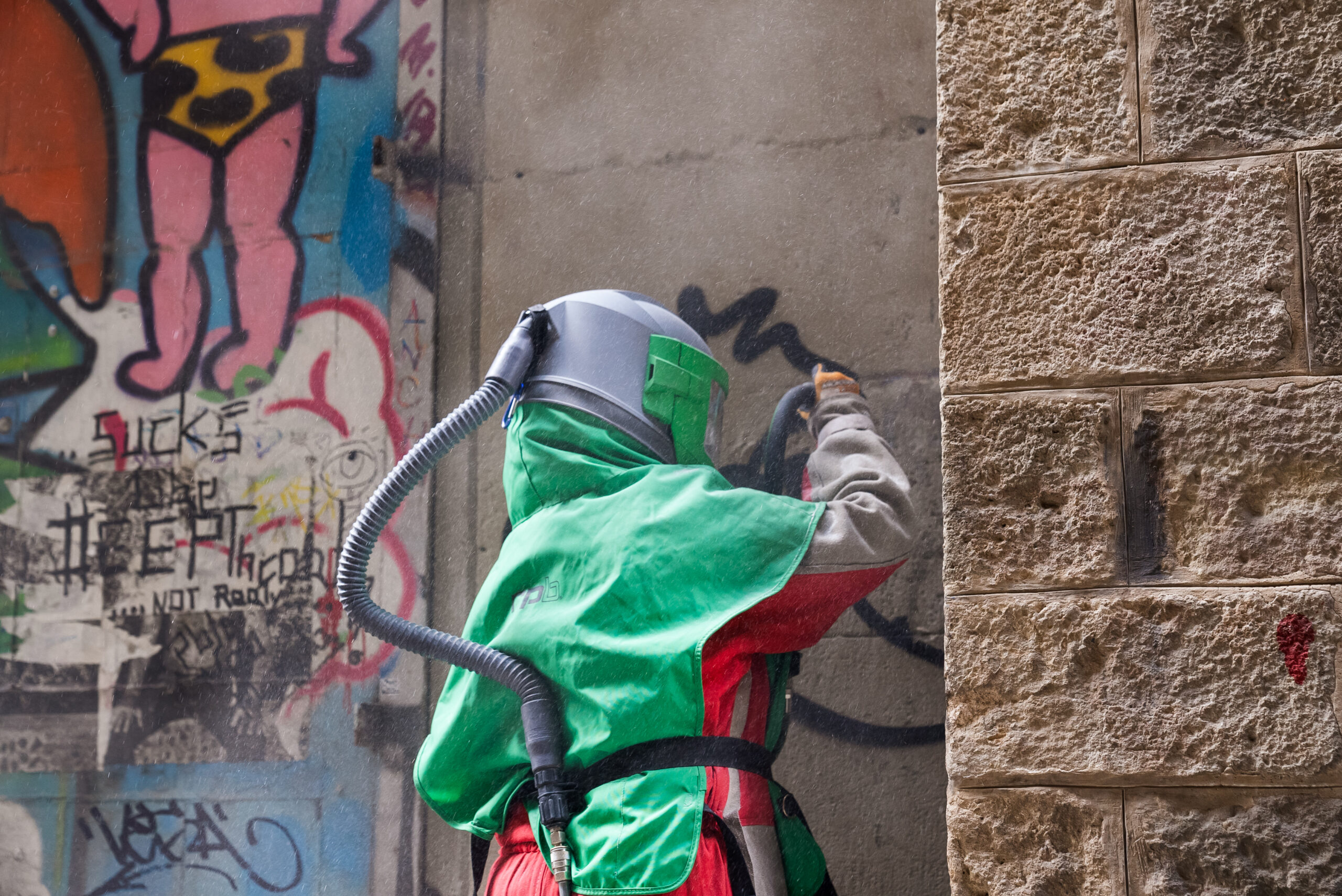 Barcelona neteja un 30% més de m2 d’espai públic amb el nou contracte d’eliminació de pintades