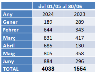 - Des que va posar-se en marxa el febrer fins al 30 de juny s’han fet 57.223 actuacions per netejar 138.599 m2, un augment del 15% en actuacions i un 30% en superfície netejada respecte a l’any passat