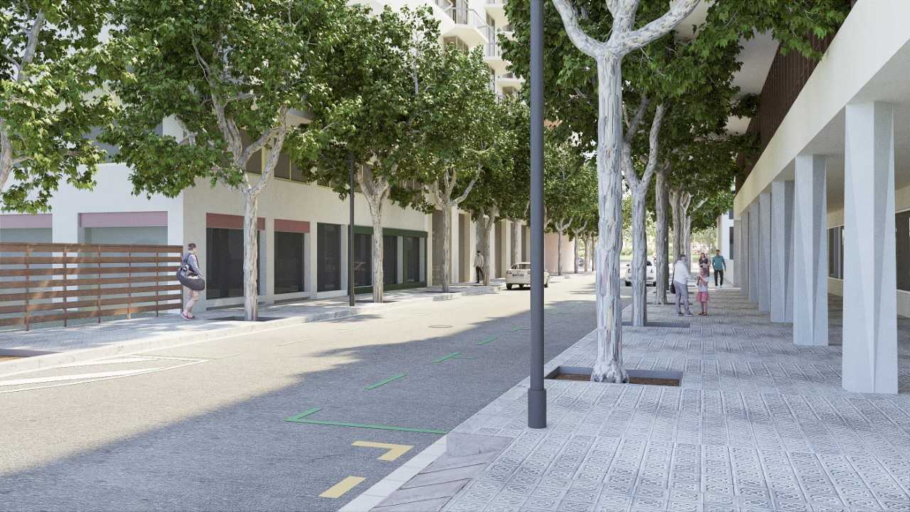 - La proposta s’emmarca dins del conjunt de les diferents actuacions dutes a terme o projectades al barri i de les necessitats del veïnat i usuaris del carrer. També preveu preservar l’arbrat existent, amb exemplars que donen una coberta verda a tot el carrer