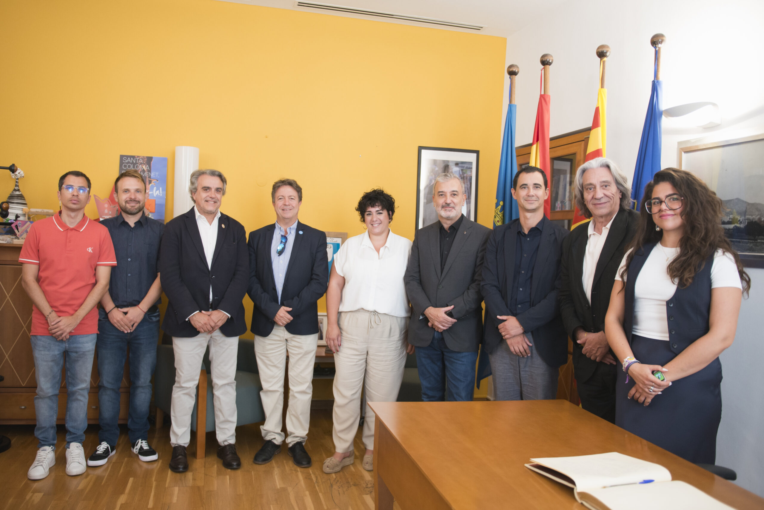 L’alcalde de Barcelona, Jaume Collboni, ha visitat aquest matí Santa Coloma de Gramenet on ha estat rebut a l’Ajuntament per l’alcaldessa de Santa Coloma, Mireia González, amb qui ha mantingut una reunió de treball, i ha signat posteriorment al llibre d’honor municipal.