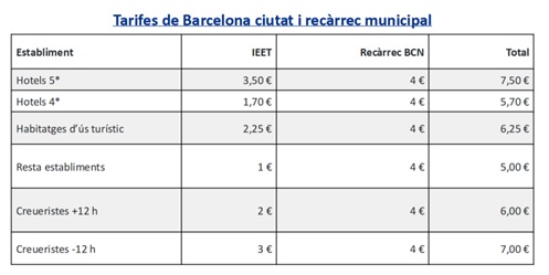 - El proper 1 d’octubre entrarà en vigor la nova tarifa, un cop ha quedat aprovada definitivament, sense haver rebut al·legacions, la modificació de l’Ordenança Fiscal 2.2 que incrementava de 3,25€ fins als 4,00€ el recàrrec municipal per a totes les categories d’allotjament