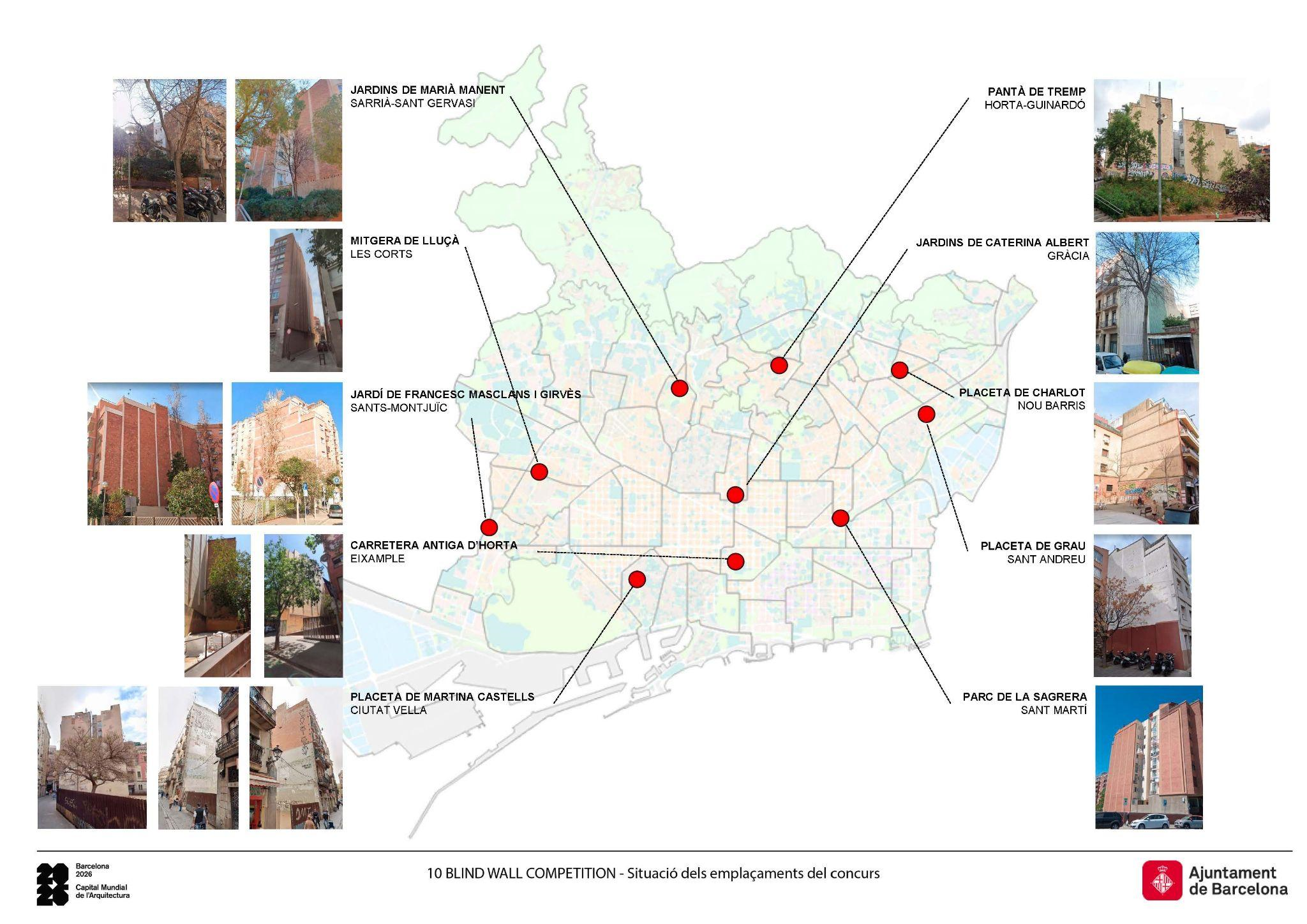 Per al concurs es van seleccionar 10 ubicacions, una per cada districte, que sumen un total de 17 mitgeres permanents. Es van escollir a partir d’un criteri de distribució territorial i buscant aquelles mitgeres amb un major impacte paisatgístic, sempre d’acord amb les comunitats de propietaris dels edificis en qüestió. Aquestes actuacions s’emmarquen també en el Programa d’Espais de Proximitat i Interiors (PEPI) per a la millora de l’espai públic de la ciutat.