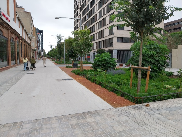 - També finalitza l’obra de l’eix verd del carrer dels Almogàvers fins al carrer de Badajoz, un nou espai pacificat que dona protagonisme a la ciutadania, al verd i a la mobilitat sostenible