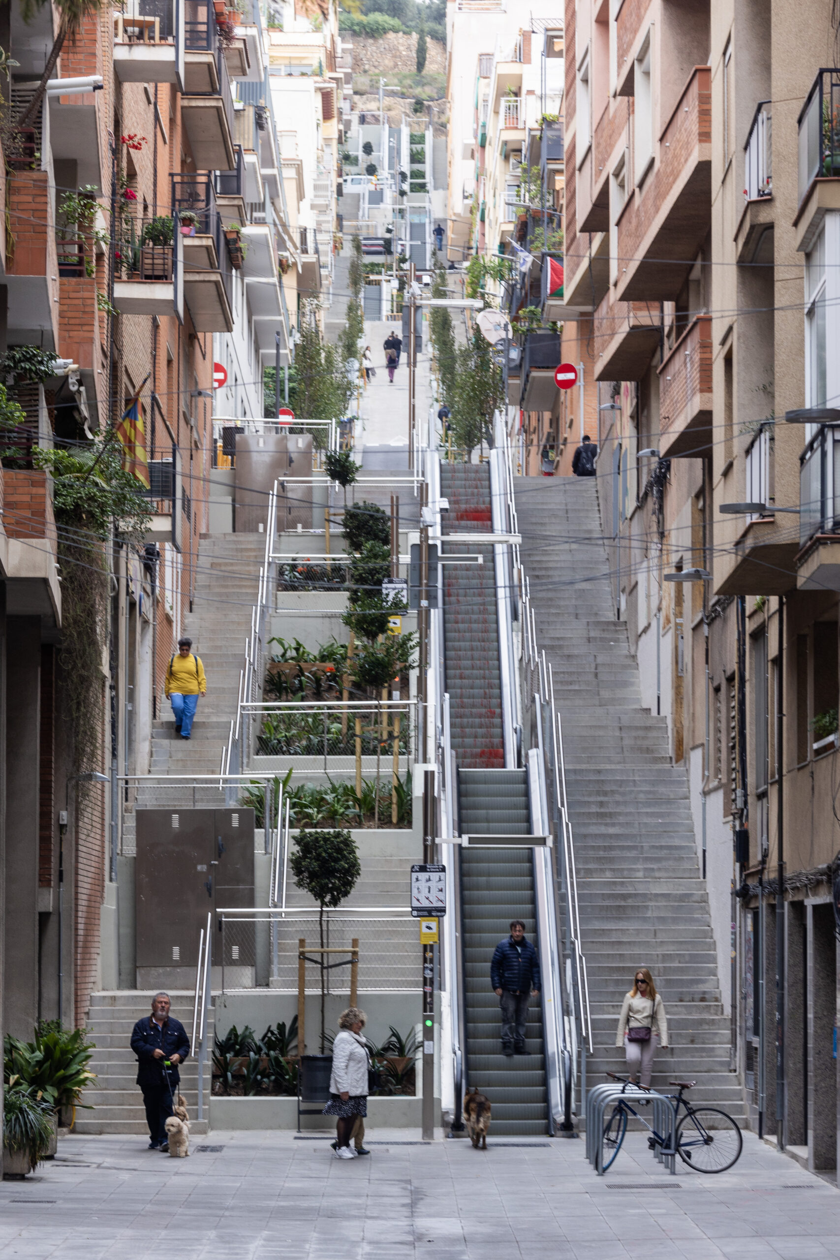 - Amb la posada en servei del tram d’escales mecàniques entre els carrers de Verdi i Sostres es completa la instal·lació d’aquesta infraestructura renovada d’escales reversibles tant de pujada com de baixada