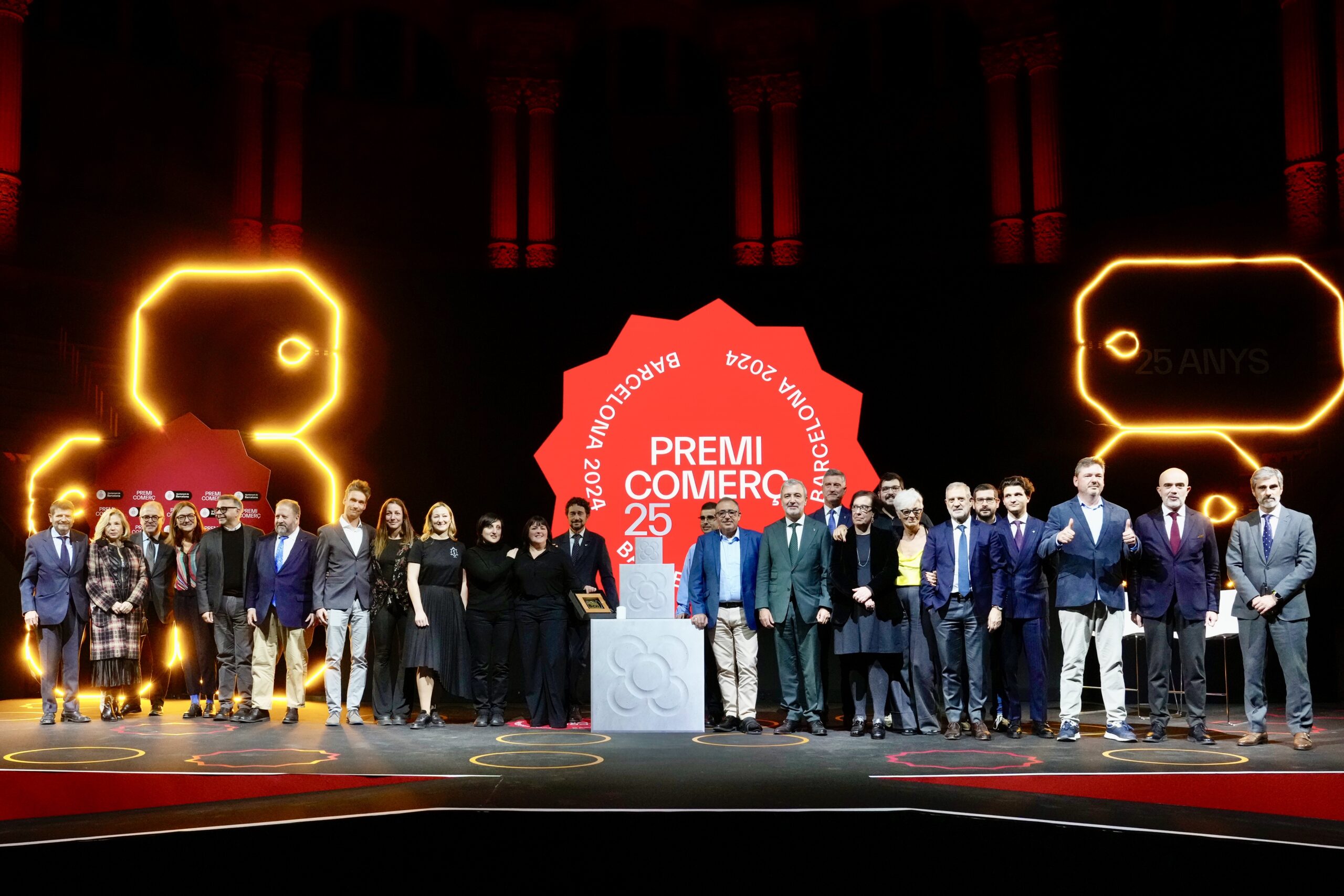L’alcalde de Barcelona, Jaume Collboni, ha presidit aquesta nit l’acte d’entrega de la 25 edició del Premi Comerç de Barcelona, que reconeix les iniciatives comercials més destacades de l’any en diferents categories. En aquesta ocasió i per celebrar el 25è aniversari, l’acte ha tingut lloc a la Sala Oval del Museu Nacional d’Art de Catalunya (MNAC), i ha comptat també amb la participació de la regidora de Comerç, Restauració i Mercats, Raquel Gil, i amb prop de 400 comerciants i representants de les associacions i eixos comercials de la ciutat i dels mercats municipals.