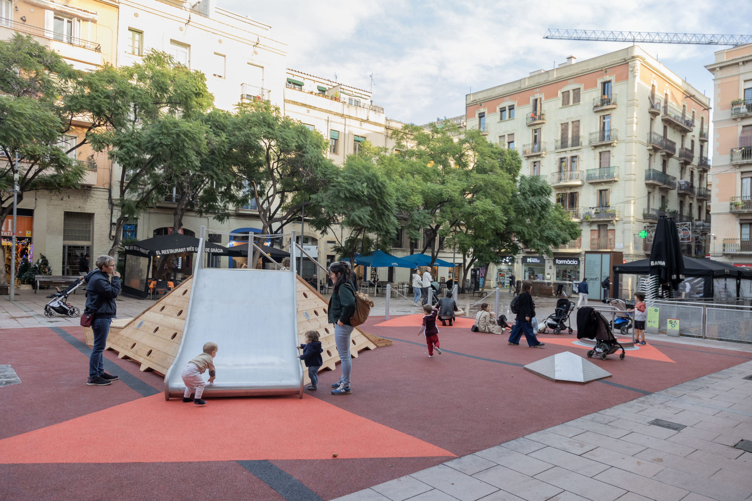 La plaça de la Revolució de la Vila de Gràcia renova els jocs infantils per fer-los accessibles