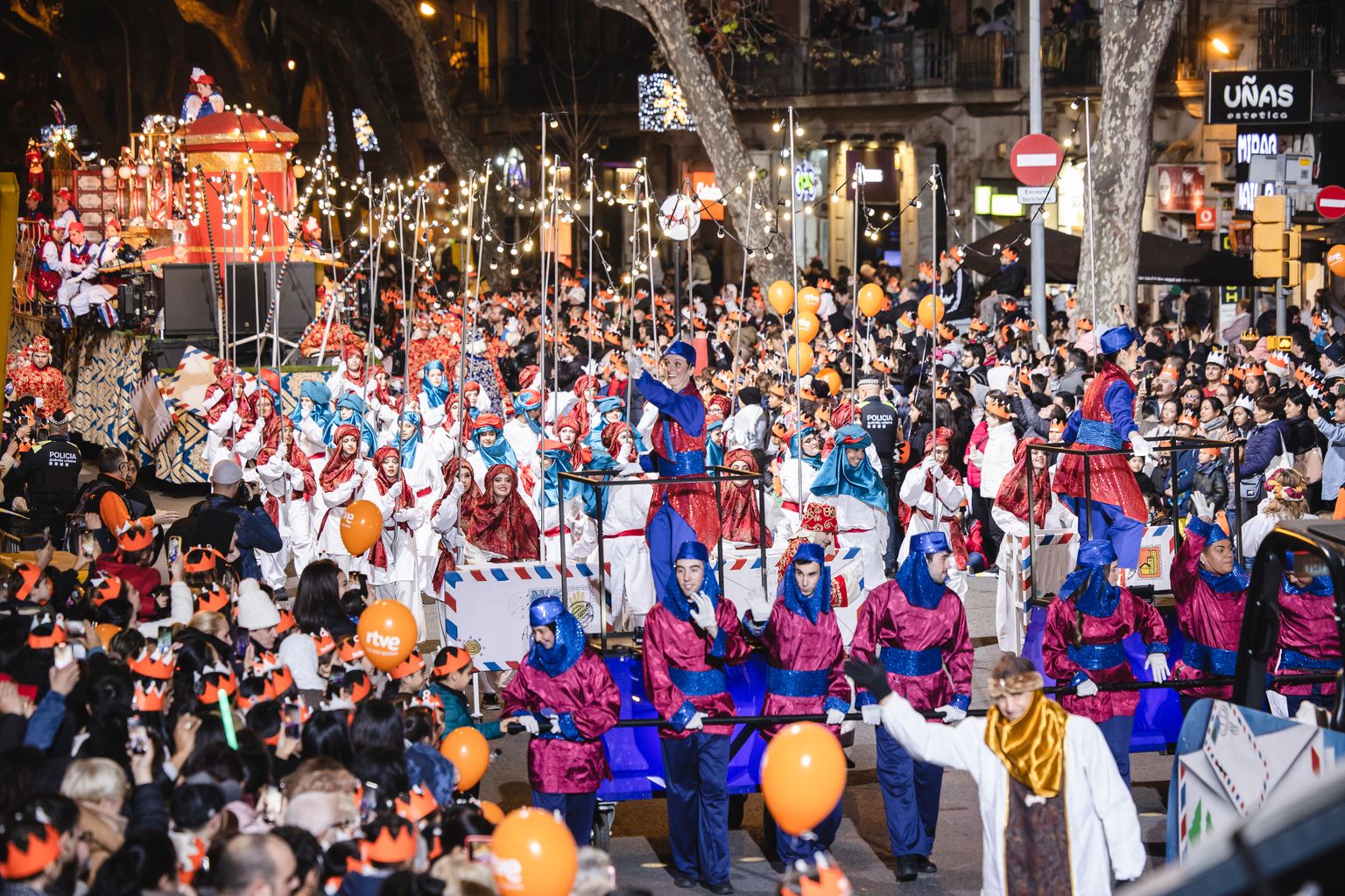 Com és tradició, els Reis d’Orient arribaran a Barcelona a bord del Pailebot Santa Eulàlia. Faran la seva entrada a la ciutat pel Portal de la Pau, a les 16.30 h. La Cavalcada arrencarà a les 18.00 h des de l’avinguda del Marqués de l’Argentera, amb el mateix recorregut de l’any passat. La Cavalcada s’obrirà amb la companyia Brincadeira, que estrenarà una nova composició d’Arturo Calvo i un nou vestuari lumínic. La carrossa de la patge Estel estrena il·luminació i coreografia, i també hi haurà novetats en la carrossa del Carbó; el Patge Gregori desfilarà en un vehicle renovat més alt, obra de José Menchero i Álex Posada, envoltat d’inflables creats per Patxo Urlezaga amb música original de Xavi Oró. Hi haurà espai per a recordar diferents efemèrides, com el centenari del metro i els 40 anys de la fundació de la companyia Roseland Musical. Entre les estrenes, el nou seguici dels Somnis incorpora inflables gegants de fins a 10 metres d’alçada, i coreografies que evoquen el món oníric, i el Rei Baltasar desfilarà acompanyat de la Nana, una titella de més de 4 metres d’alçada que simbolitza la migració i el coratge humà.