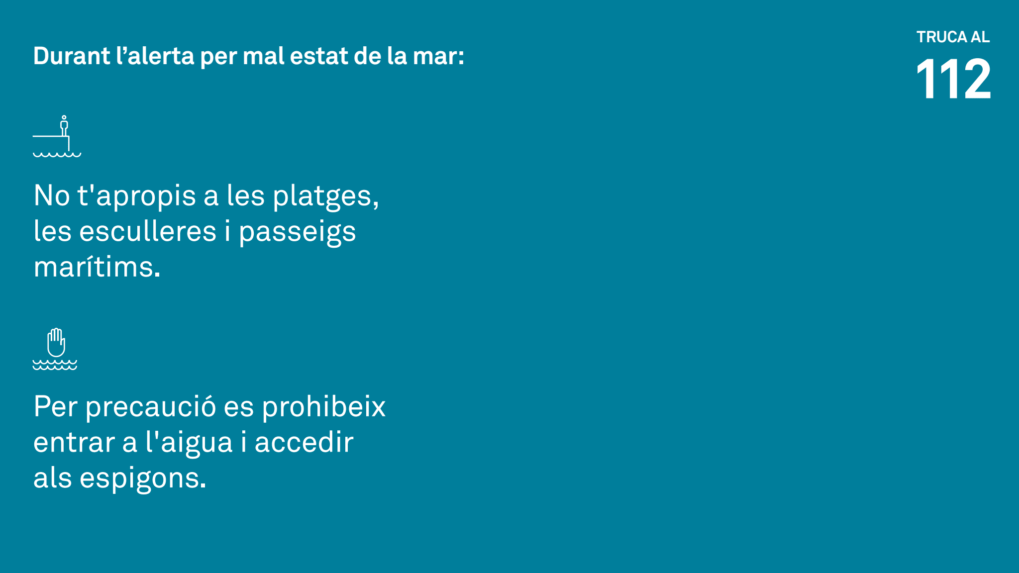 Com a conseqüència d’aquesta activació i per prevenció, es recomana a la ciutadania que augmentin la precaució i evitin accedir a les platges. Així mateix es recorda la prohibició d’accedir als espigons de la platja i d’entrar a l’aigua mentre onegi la bandera vermella, hissada a totes les platges.