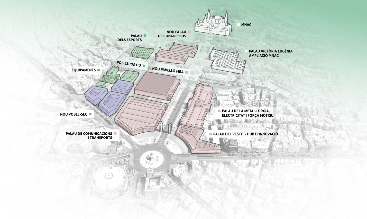 A tocar de la plaça d’Espanya hi ha un dels àmbits rellevants de la transformació de Montjuïc, la renovació i ampliació de Fira de Barcelona que consolidarà la posició de la ciutat com a referent global en fires i congressos. Una transformació que culminarà amb la commemoració del centenari de l’Exposició Universal de 1929.