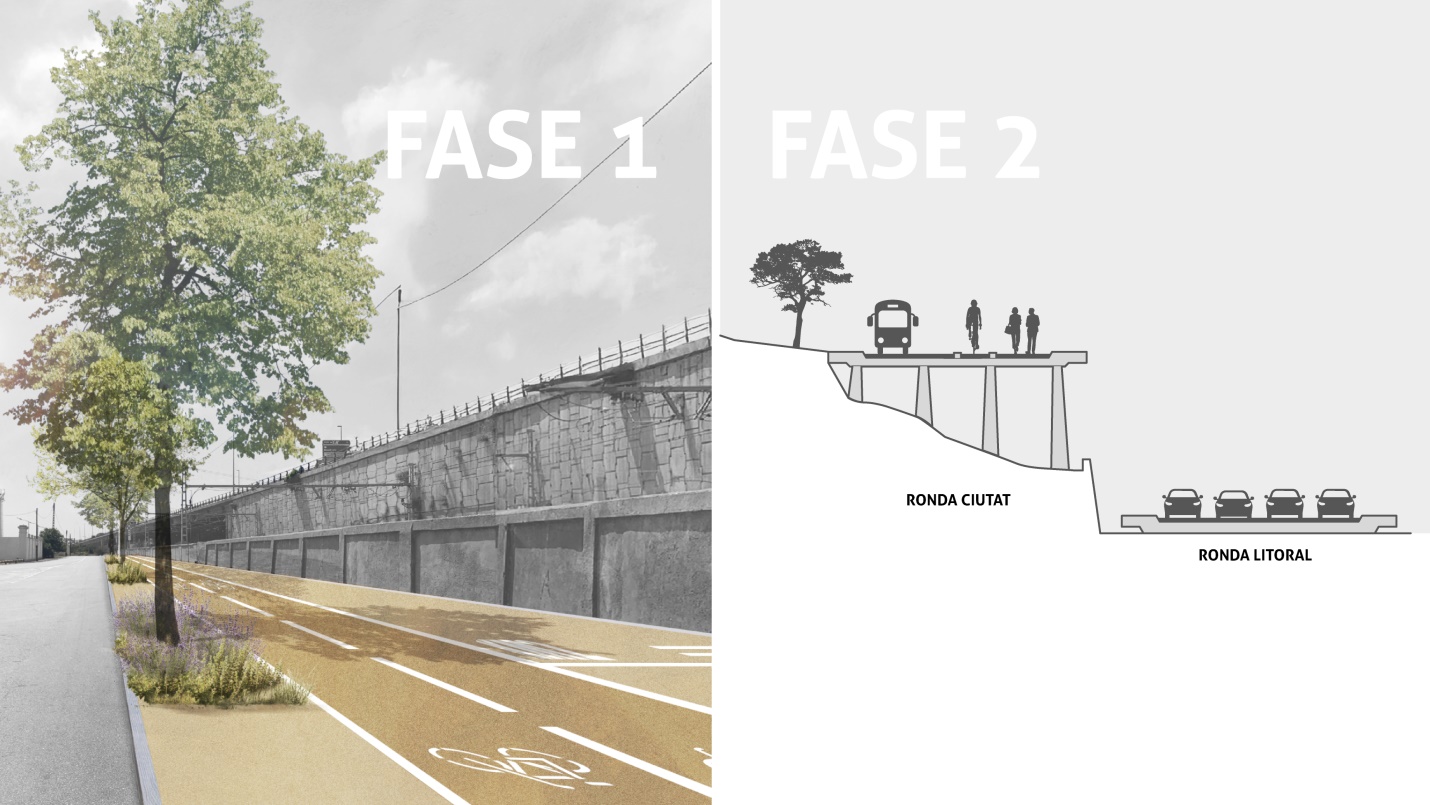 Aquesta transformació es farà en dues fases. La primera, liderada pel Port de Barcelona, finalitzarà l’any 2027 i permetrà tenir un nou vial en la cota del port per a transport públic, vianants i bicicletes. Aquesta actuació té un pressupost de 10 milions d’euros.