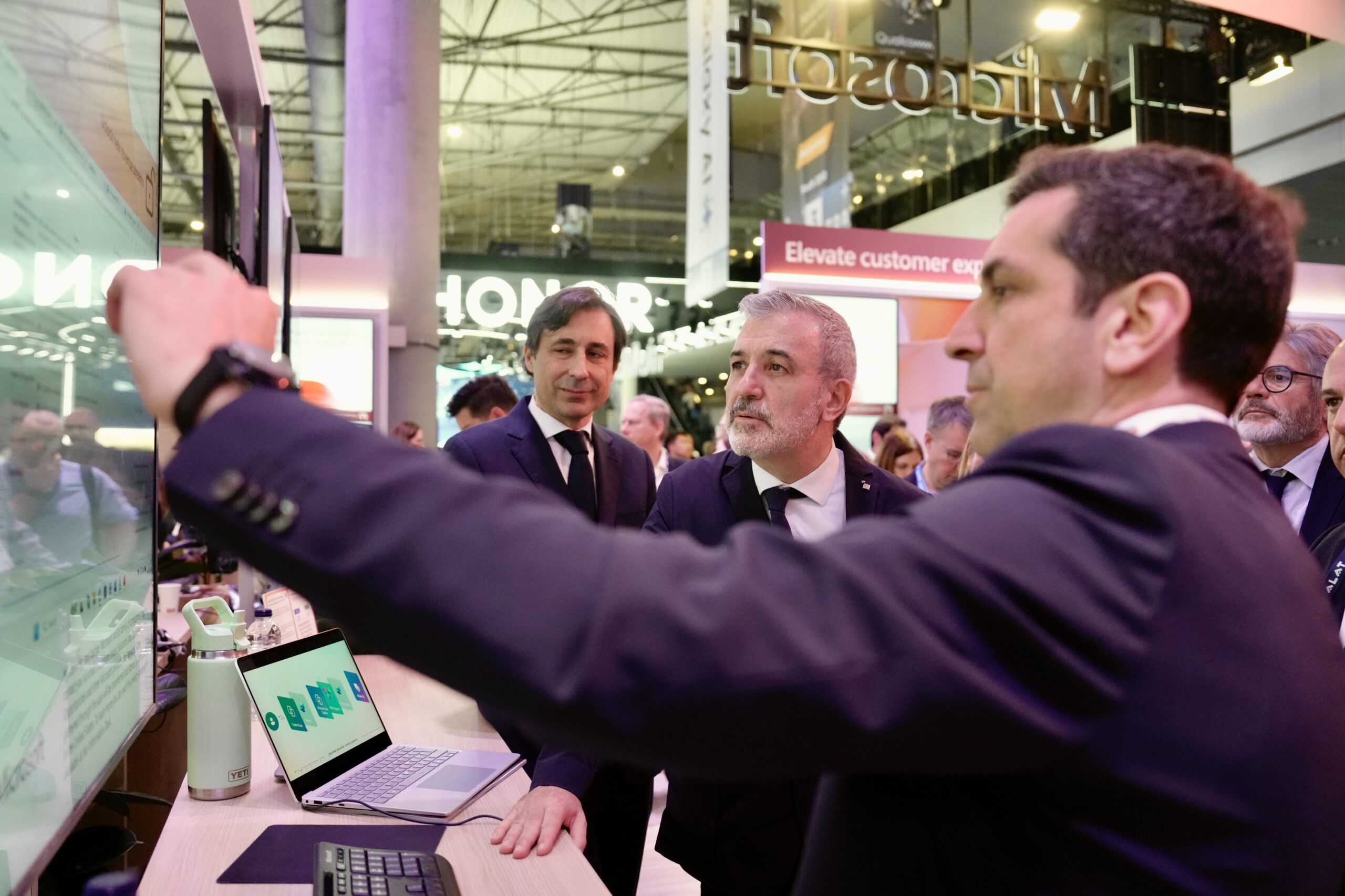 L’alcalde de Barcelona, Jaume Collboni, s’ha reunit aquest dimarts amb el nou president de Microsoft España, Paco Salcedo, en el marc del MWC25 que se celebra aquests dies. La trobada s’ha produït en l’estand que la companyia té en el congrés i l’alcalde ha estat acompanyat per la gerenta municipal, Laia Claverol, i el director de l’Institut Municipal d’Informàtica (IMI), Emili Rubió. Per part de Microsoft també hi eren la directora de Sector Público a Espanya, Natalia Escobedo, així com la responsable de Sector Públic a Catalunya, Regina Solé del Barrio.