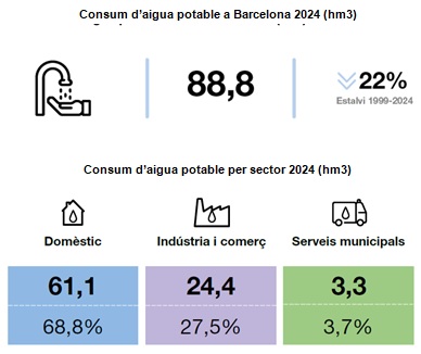 L’informe sencer del consum d’aigua a Barcelona 2024 es pot consultar en aquest enllaç.