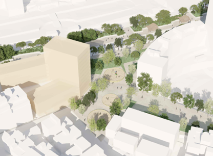 Simulació del conjunt del nou parc des del carrer de Segur.