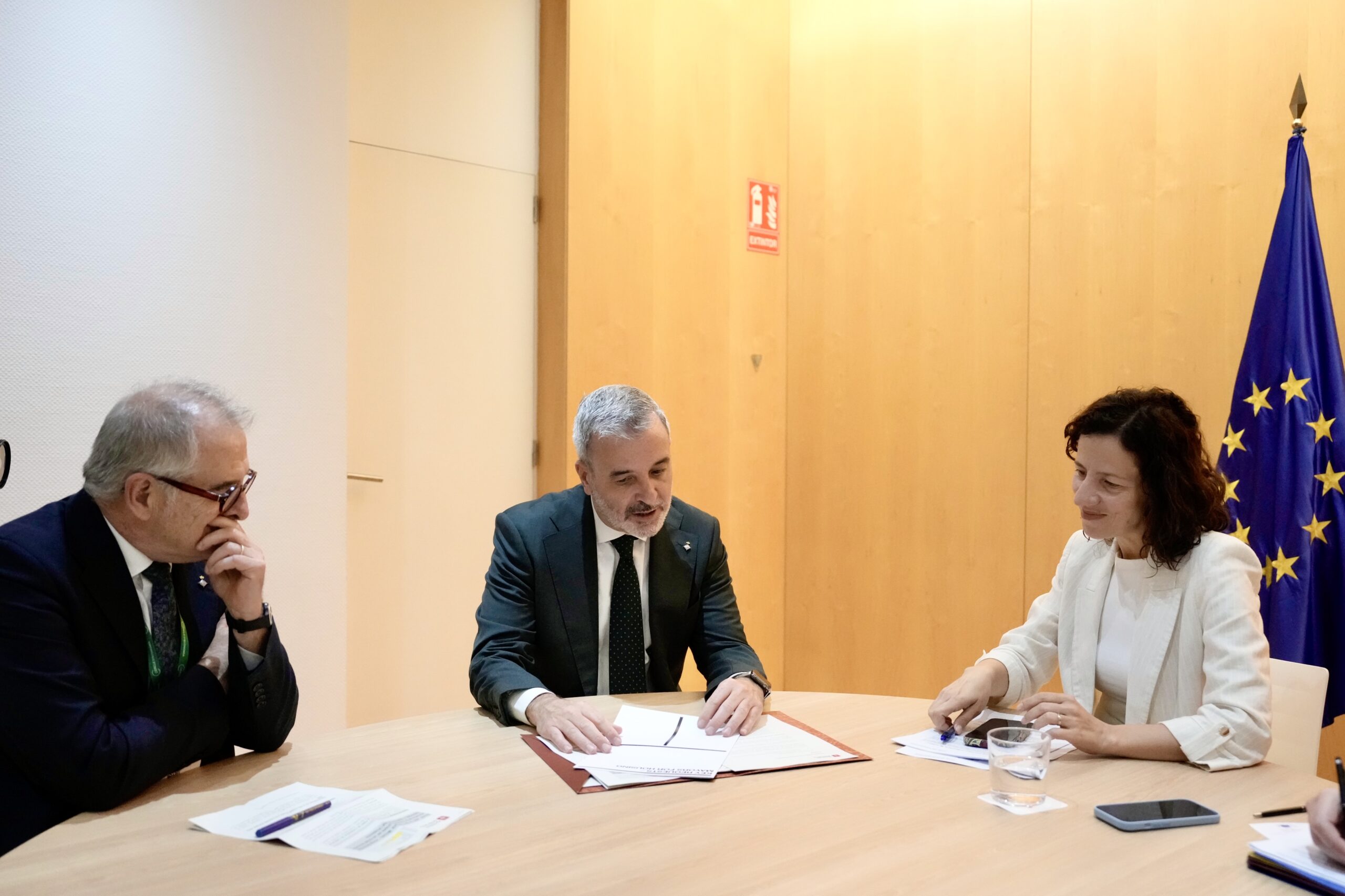 Aquest migdia, l’alcalde de Barcelona, Jaume Collboni, i el tinent d’Alcaldia de l’àrea d’Economia, Hisenda, Promoció Econòmica i Turisme, Jordi Valls, s’han reunit amb la Vicepresidenta executiva de Drets Socials de la Comissió Europea, Roxana Mînzatu.