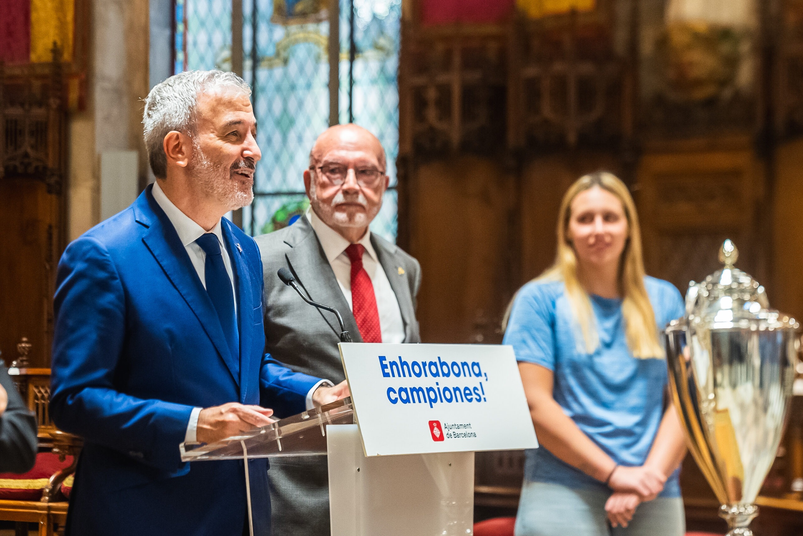 Collboni ha destacat que “es tracta d’un triomf per a la ciutat però també per a totes les nenes esportistes que ara potser han començat a nedar i a practicar el waterpolo i us posen com a exemple. I això és obrir camí amb les victòries, creant referents en l’àmbit esportiu” “Espero que ens podem tornar a trobar una altra vegada ben aviat per celebrar el títol de Lliga”, ha afegit l’alcalde.