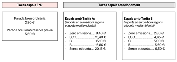Les noves taxes de pagament per ocupació de l’espai públic, a banda dels 35 euros per tramitar el permís diari, quedaran distribuïdes de la següent manera: