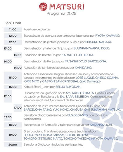 El Festival Matsuri, que apropa la cultura tradicional japonesa a Barcelona, se celebrarà el cap de setmana del 21 i 22 de juny al Moll de la Fusta, arribant enguany a la seva onzena edició. Es tracta del major festival tradicional japonès de Barcelona adreçat a la ciutadania amb demostracions de danses típiques, música tradicional i menjar típic japonès. Un esdeveniment, que tindran lloc des de les onze del matí fins a les vuit del vespre, que convida la ciutadania a descobrir el Japó més tradicional, lluny de la cultura pop habitual d’anime i manga.