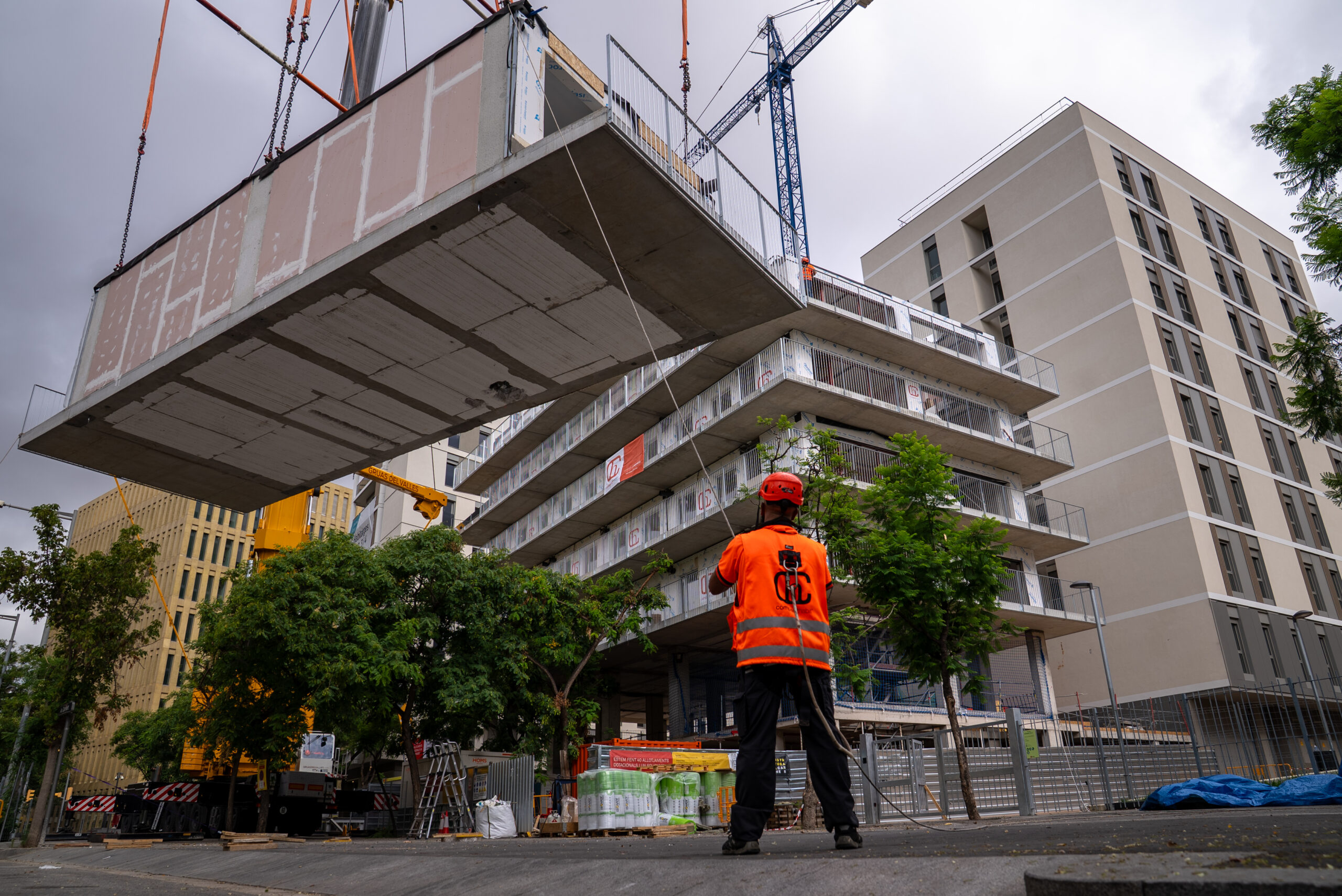 L’Ajuntament continua apostant per l’impuls a la construcció industrialitzada amb l’objectiu d’incrementar el parc públic d’habitatge a la ciutat i accelerar el ritme de construcció d’una manera més sostenible. Així ho demostra la nova promoció de 40 habitatges públics situada a l’avinguda del Carrilet, 22-24, al districte de Sants-Montjuïc, que aixecarà la part modular en només 10 dies gràcies a la col·locació de 48 mòduls tridimensionals que han estat produïts i equipats a fàbrica. Un cop acabi el muntatge de la segona a la novena planta, es realitzaran les instal·lacions de subministrament i els acabats finals de façana, terrasses i cobertes.
