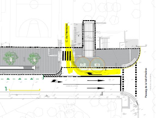 L’actuació comporta també en tot aquest tram de carrer una reordenació dels carrils de circulació de vehicles, de manera que entre l’encreuament del carrer Poesia amb el carrer Harmonia, i el carrer Vayreda quedarà eliminada la circulació de vehicles en sentit pujada.