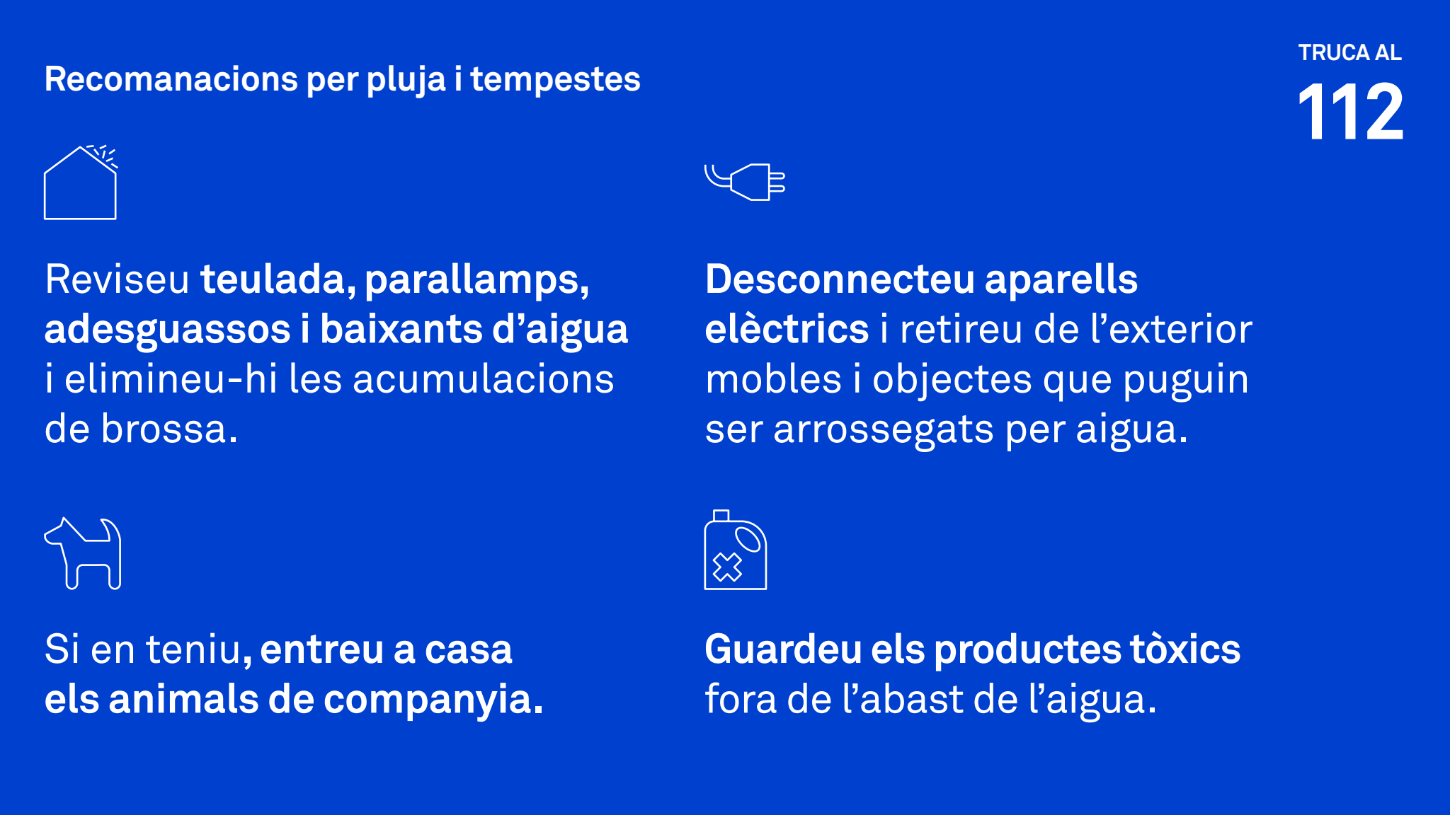 – Desconnecteu aparells elèctrics i retireu de l’exterior mobles i objectes que puguin ser arrossegats per aigua