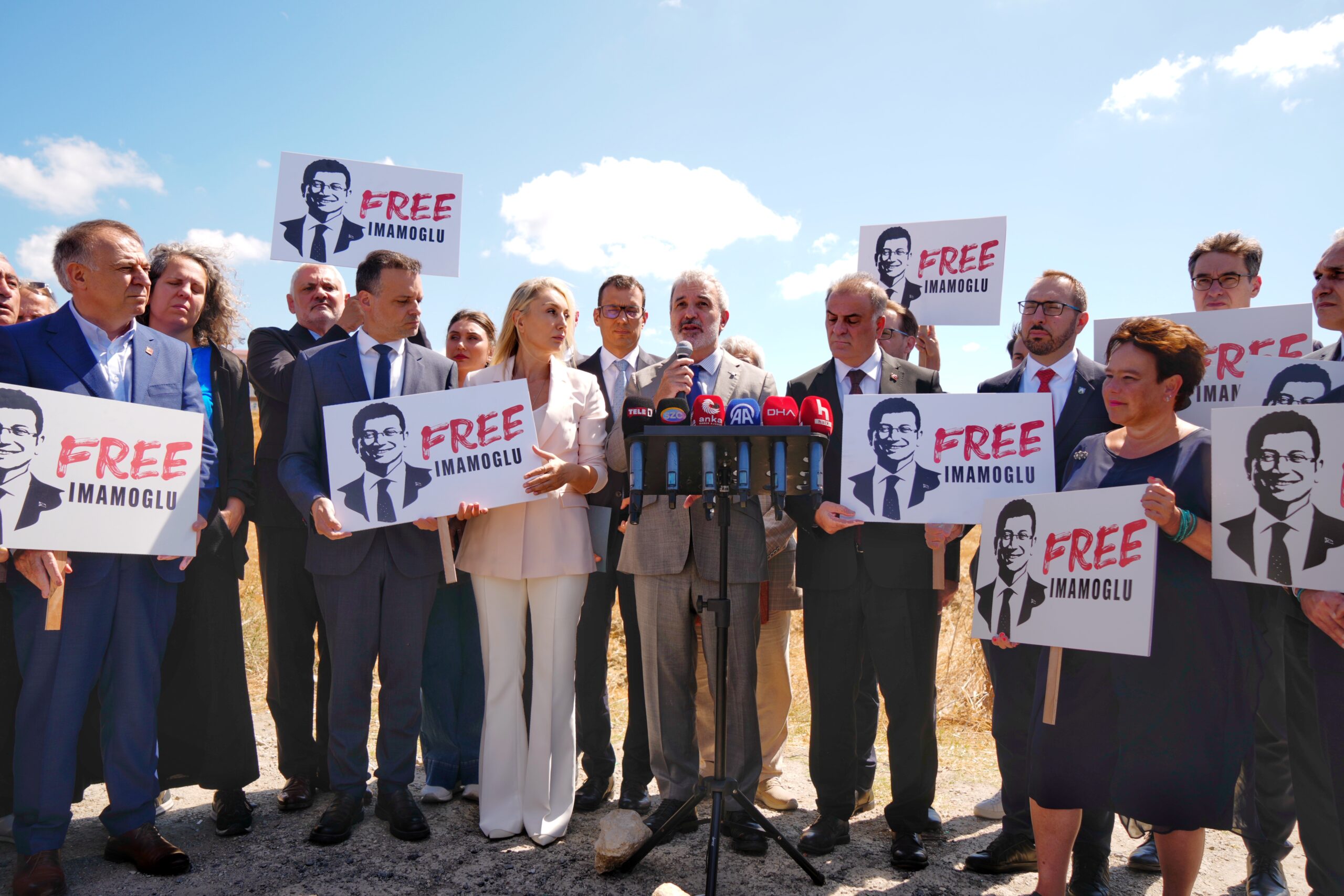 - La delegació, formada per una desena d’alcaldes i altres representants municipals, s’ha desplaçat a la presó de Silivri, on ha tingut lloc una trobada simbòlica en suport de l’alcalde empresonat