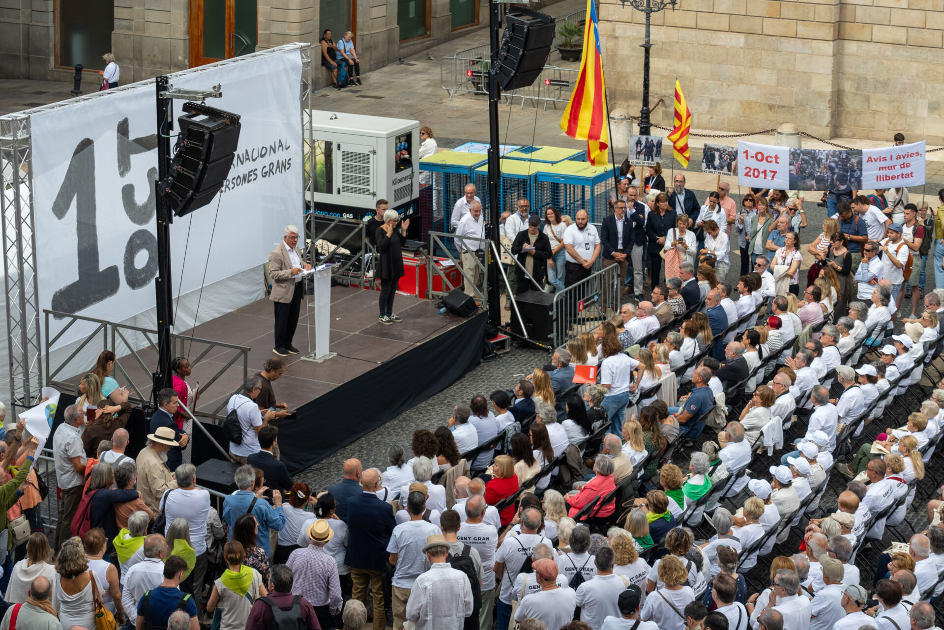Per segon any consecutiu, aquesta commemoració tindrà ha tingut un caràcter unitari i conjunt i el centre neuràlgic de la celebració ha estat la plaça de Sant Jaume. Entitats de persones grans, sindicats, partits polítics i administracions que formen part del comitè unitari de l’1 d’octubre han impulsat, a més de l’acte unitari, un manifest conjunt que porta el lema “Per una societat lliure d’edatisme”. El manifest diu el següent:
