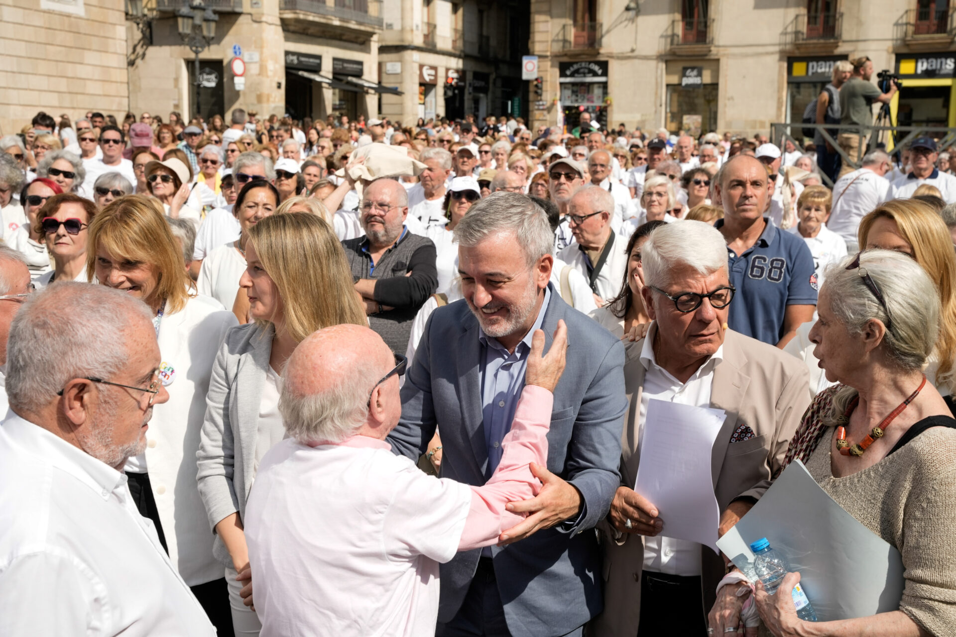 L’alcalde de Barcelona, Jaume Collboni, ha assistit avui a l’acte unitari de celebració del Dia Internacional de les Persones Grans, que s’ha celebrat a la plaça Sant Jaume, acompanyat dels tinents d’Alcaldia Maria Eugènia Gay i Albert Batlle, entre altres autoritats, acte en el qual han participat 600 persones. L’actriu Vicky Peña ha estat l’encarregada de la lectura del manifest conjunt, sota el lema “Per una societat lliure d’edatisme”. Un manifest que ha estat signat i ha rebut el suport de més de 400 persones, institucions i entitats, entre les quals el Plenari del Consell Municipal, que s’hi va adherir en la sessió ordinària de divendres passat 26 de setembre, mitjançant una declaració institucional, mostrant així el compromís de Barcelona com a Ciutat Amigable amb les Persones Grans i amb els seus drets.