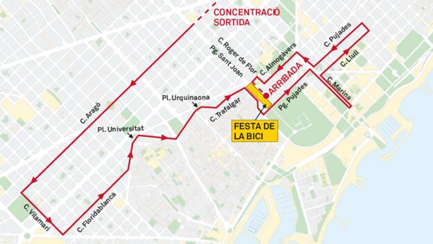 Tot el recorregut de la Bicicletada estarà tallat al trànsit per poder garantir que es desenvolupi amb total seguretat. Les afectacions i restriccions aniran finalitzant a mesura que vagi passant la marxa.