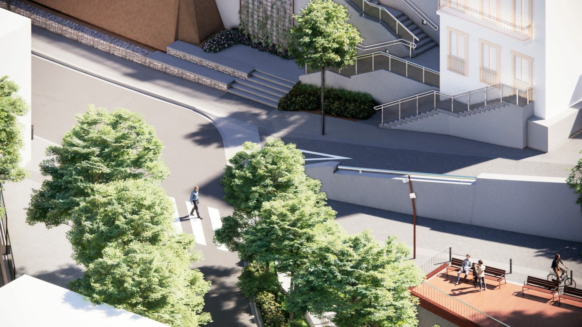 També s’ampliarà la calçada del carrer de Tirso i la vorera de l’Escola Mare de Déu del Coll per facilitar-ne l’accessibilitat. A més, desapareixerà el graonat actual. L’altra vorera es transformarà en unes escales que connectaran amb el carrer de Portell. Pel que fa als autobusos, l’ampliació de la calçada permetrà el gir amb seguretat en els dos sentits de la marxa.
