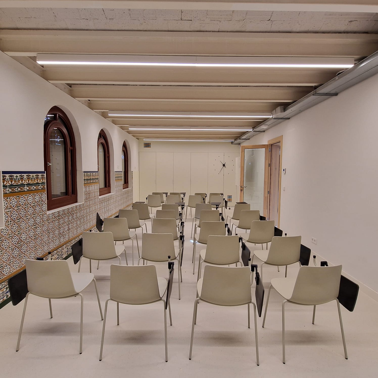 L’edifici disposa de múltiples espais flexibles i adaptables tant als diferents usos com a l’aforament que es necessiti. A totes les sales i espais amb activitat hi ha llum i ventilació natural.
