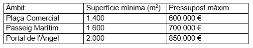 - Es convoca el concurs per dotar d’ombra estacional espais singulars de la ciutat: es fixa un mínim de 2.000 m² al Portal de l’Àngel, 1.600 m² al passeig Marítim i 1.400 m² a la plaça Comercial