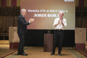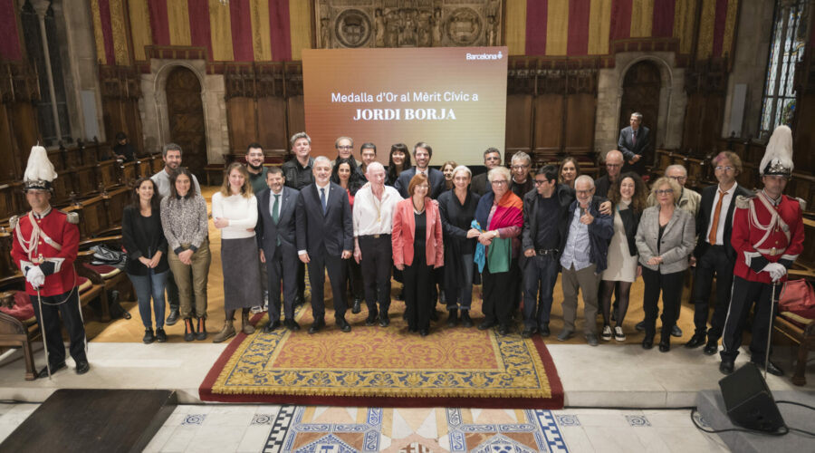 El geògraf i urbanista Jordi Borja ha rebut la Medalla d’Or al Mèrit Cívic aquesta tarda al Saló de Cent de l’Ajuntament de Barcelona, en reconeixement de la seva trajectòria exemplar en l’àmbit de l’urbanisme, el pensament crític i el compromís cívic i polític amb la ciutat de Barcelona.