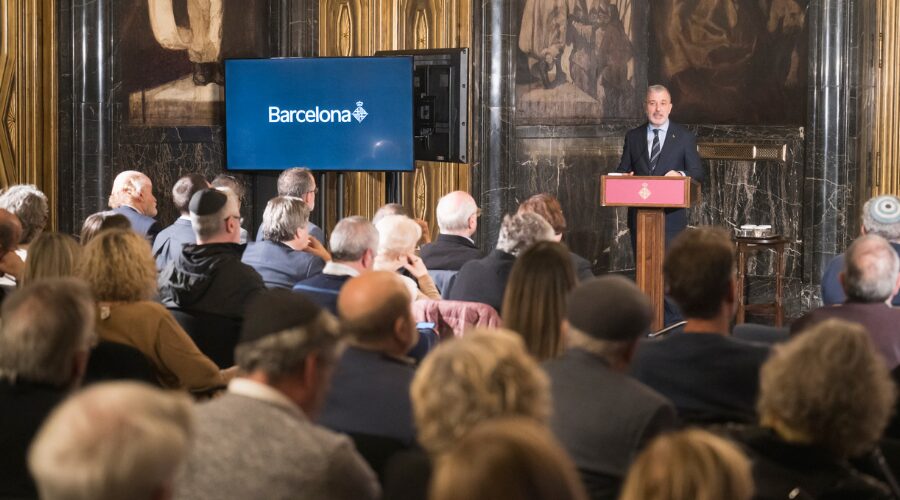 El Saló de Cròniques de l’Ajuntament de Barcelona ha acollit aquest vespre l’acte de commemoració de la ‘Kristallnatch. La nit dels vidres trencats’, un homenatge a les persones jueves víctimes de l’Holocaust nazi.