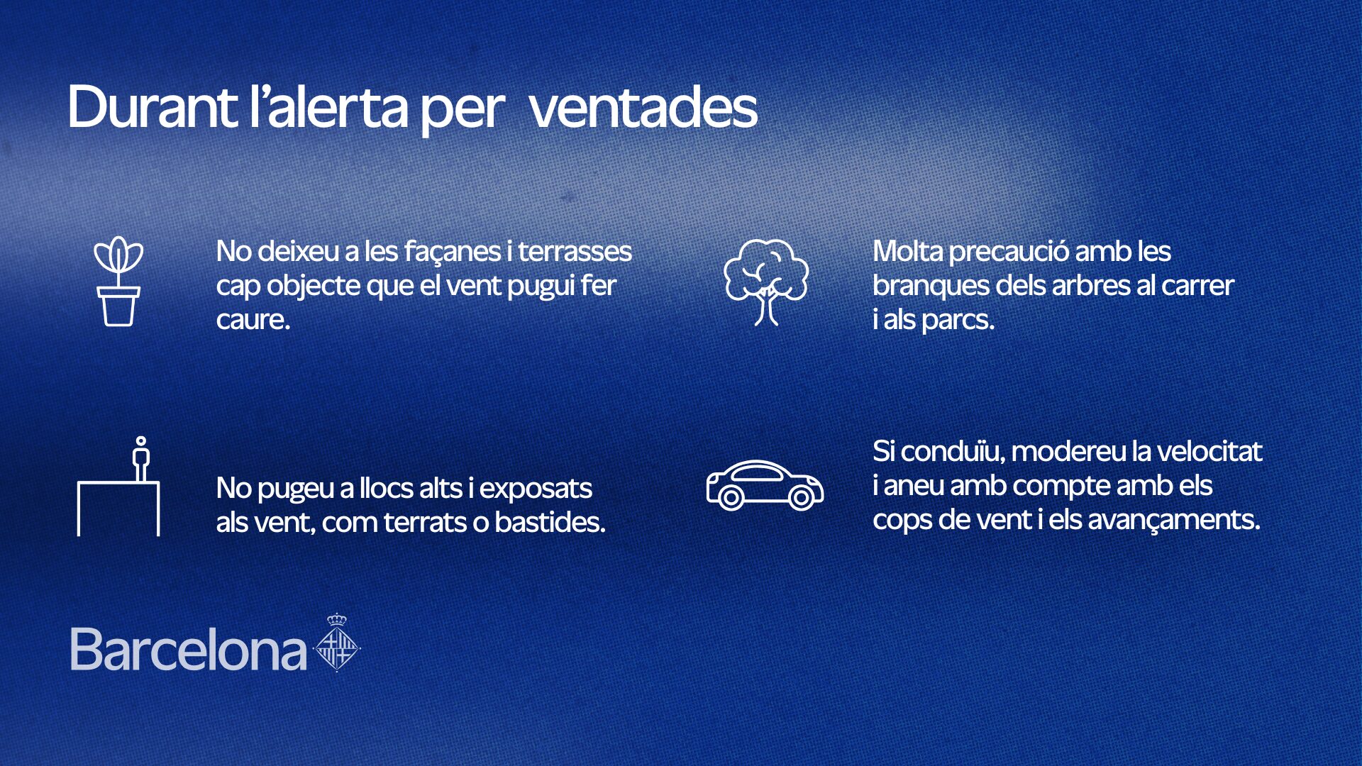 També cal tenir cura dels vehicles que estiguin aparcats al carrer, ja que el vent pot fer caure les motos o algun element de mobiliari urbà.