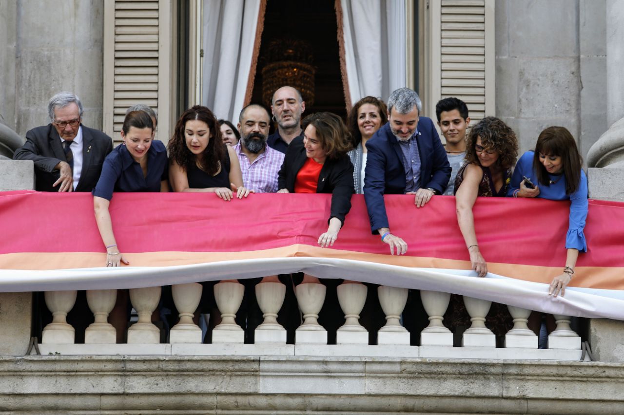 Aquest matí, a l’Ajuntament de Barcelona, l’alcaldessa, Ada Colau, ha presidit la penjada del penó amb l’Arc de Sant Martí amb motiu de la diada per l’alliberament sexual i de gènere.