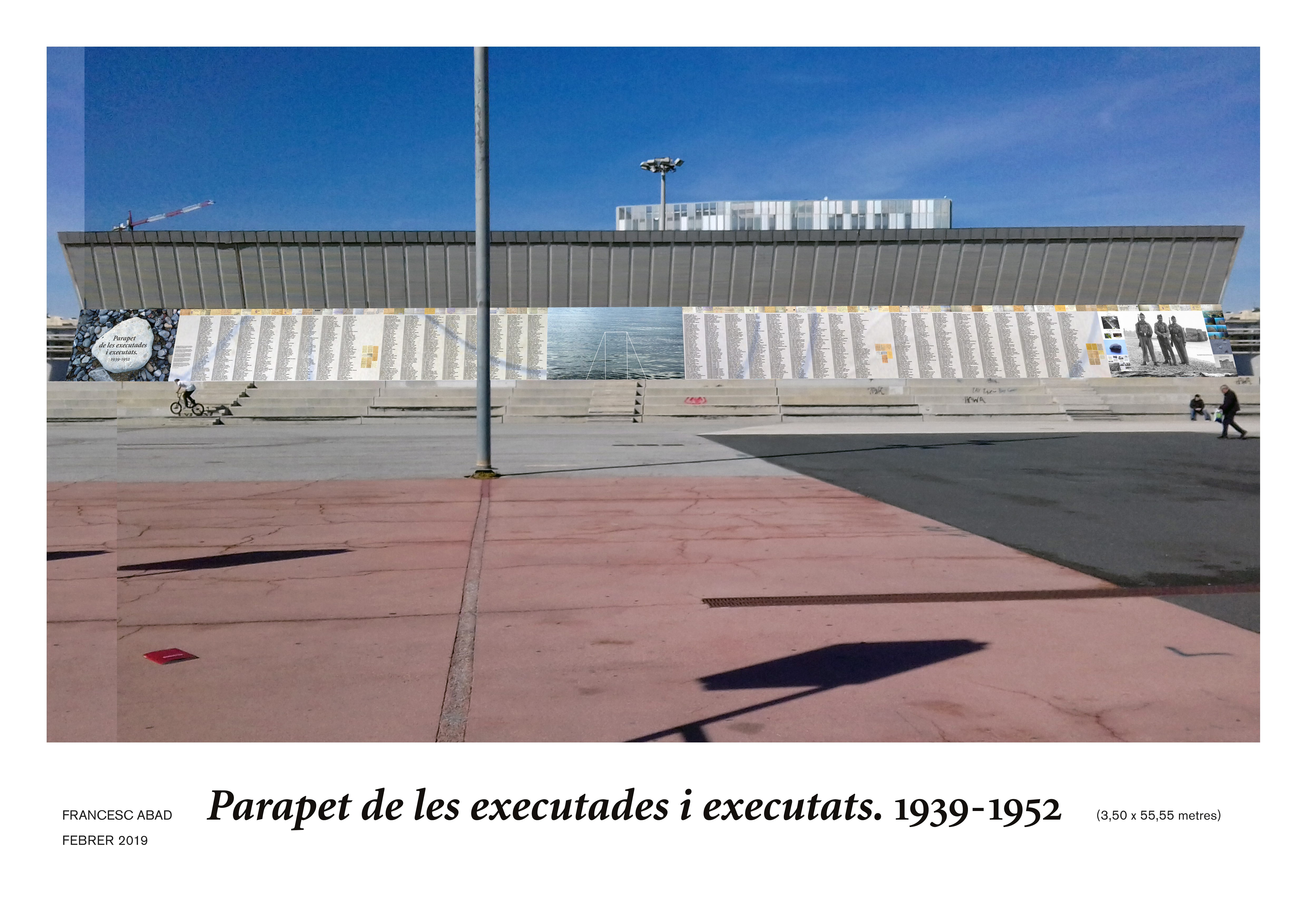 La placa commemorativa està situada davant l’entrada principal del Museu Blau de Ciències Naturals, a l’edifici Fòrum, lloc que correspon a l’emplaçament d’una de les fites més característiques del Camp de la Bota, el castell de les Quatre Torres.