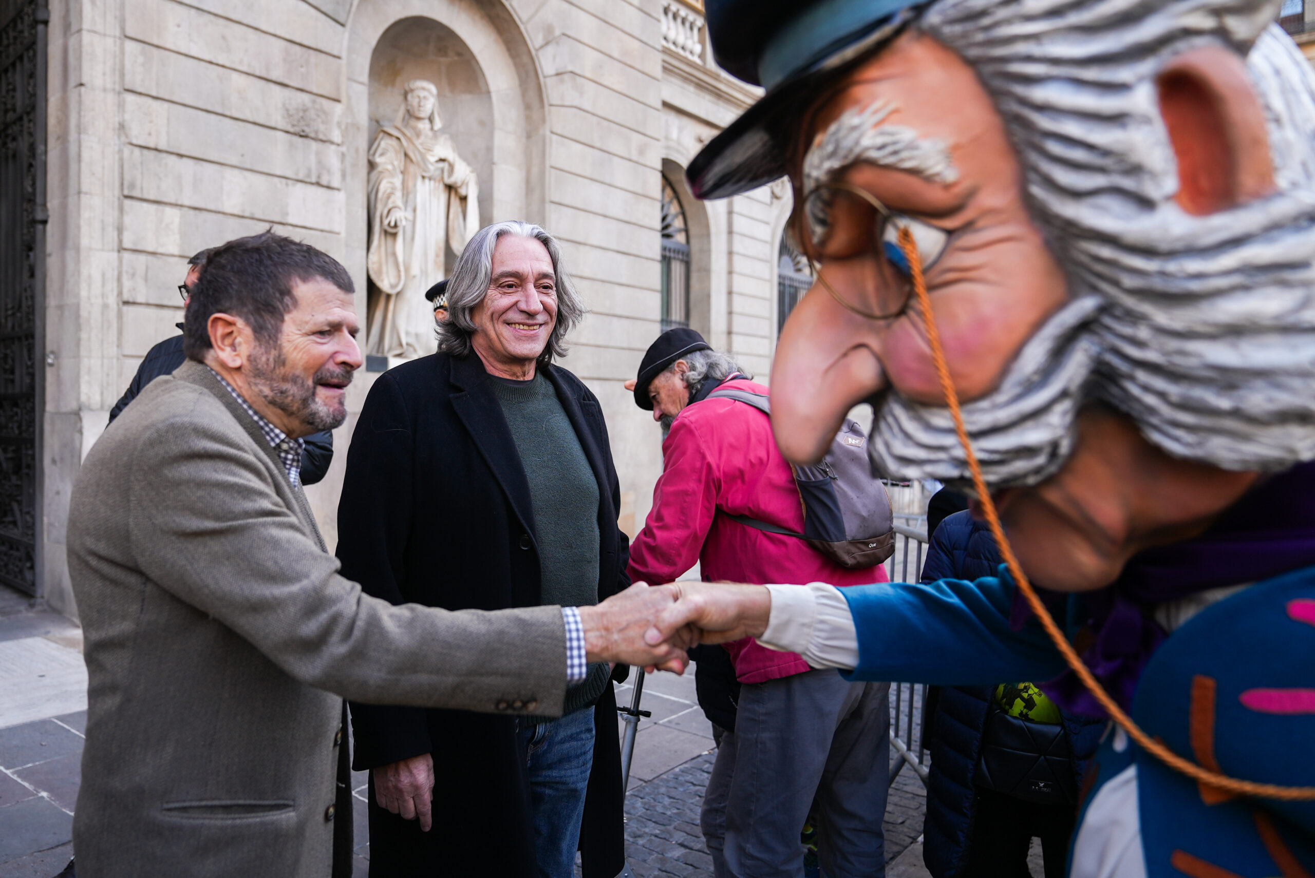 Aquest migdia, a la porta de l’Ajuntament de Barcelona (plaça Sant Jaume), el tercer tinent d’alcalde de prevenció, seguretat, convivència i règim interior, Albert Batlle; i el regidor de Cultura i Indústries Creatives i regidor del districte de Nou Barris, Xavier Marcé, han lliurat les claus de l’Any Nou a l’Home dels Nassos.