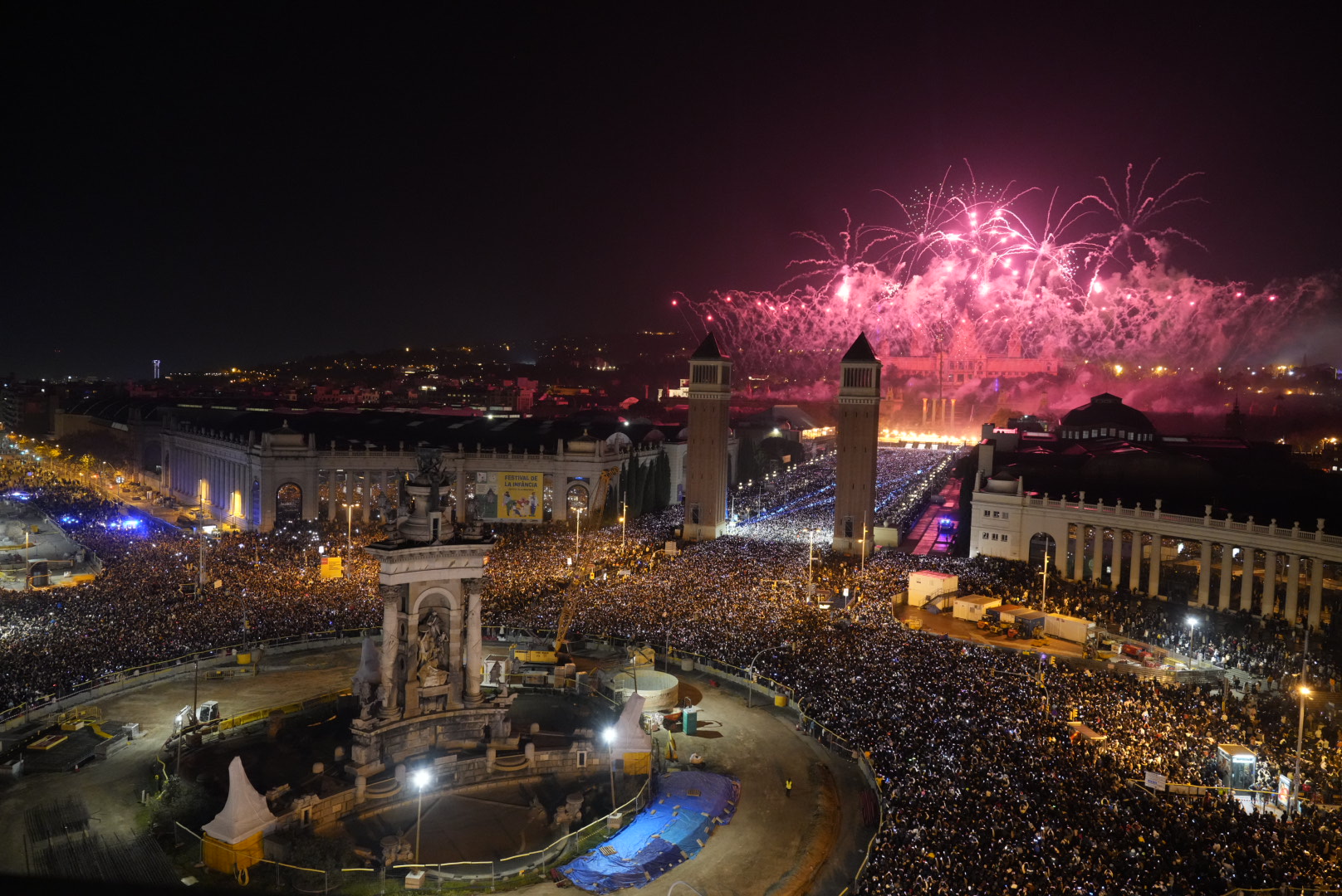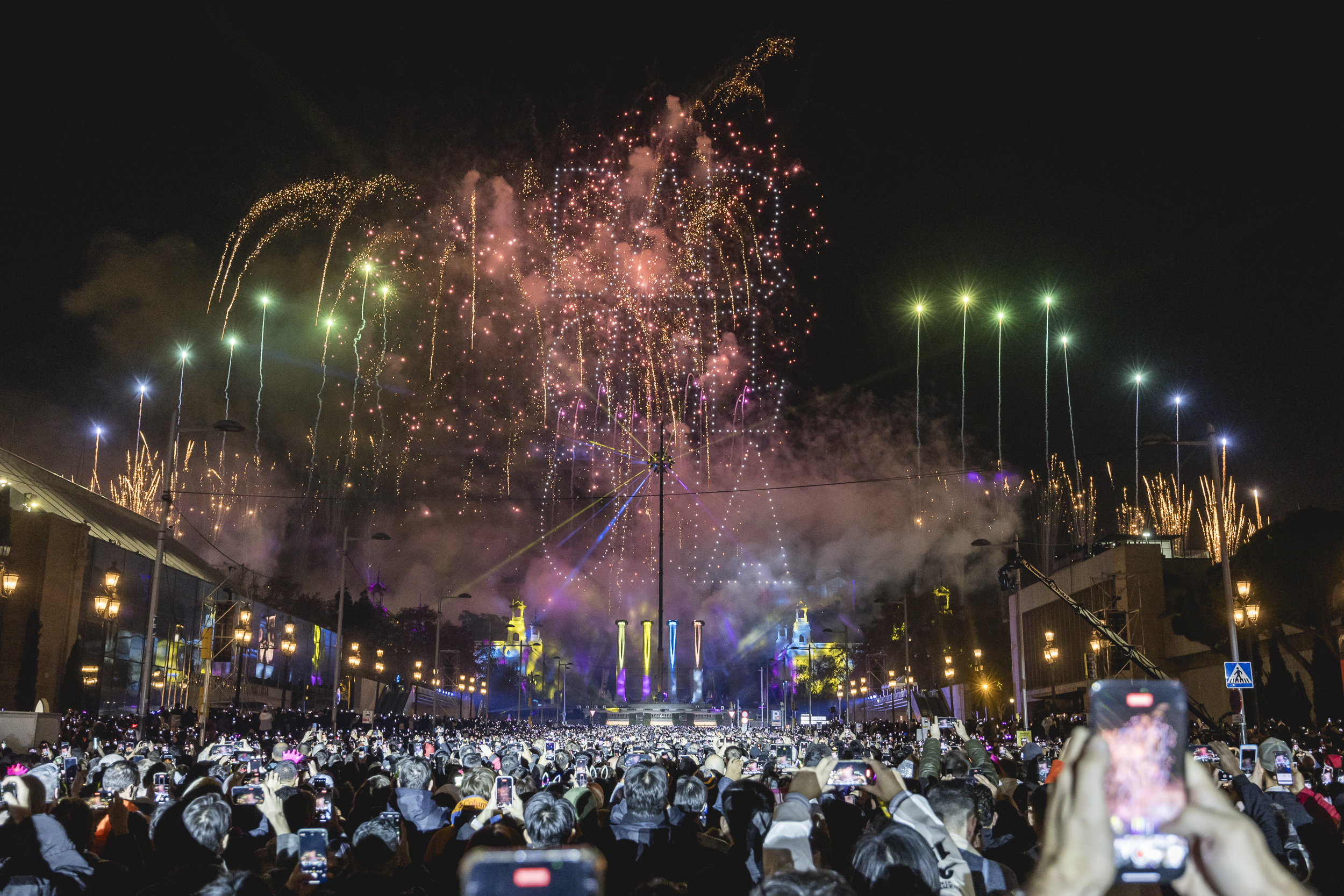 Barcelona ha acomiadat el 2024 i ha celebrat l’arribada del 2025 amb una festa de pirotècnia i drons a l’avinguda de Maria Cristina de la mà de la companyia francesa Groupe F, i amb l’assistència de 120.000 persones.