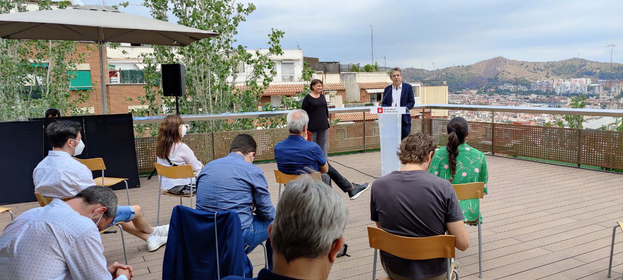 El primer tinent d’alcaldia, Gerardo Pisarello, la regidora d’Horta-Guinardó, Mercedes Vidal i el comissionat de Programes de memòria, Ricard Vinyes, han participat a la inauguració de la placa commemorativa en homenatge als veïns que van viure als barris de barraques del Carmel i de Can Baró.