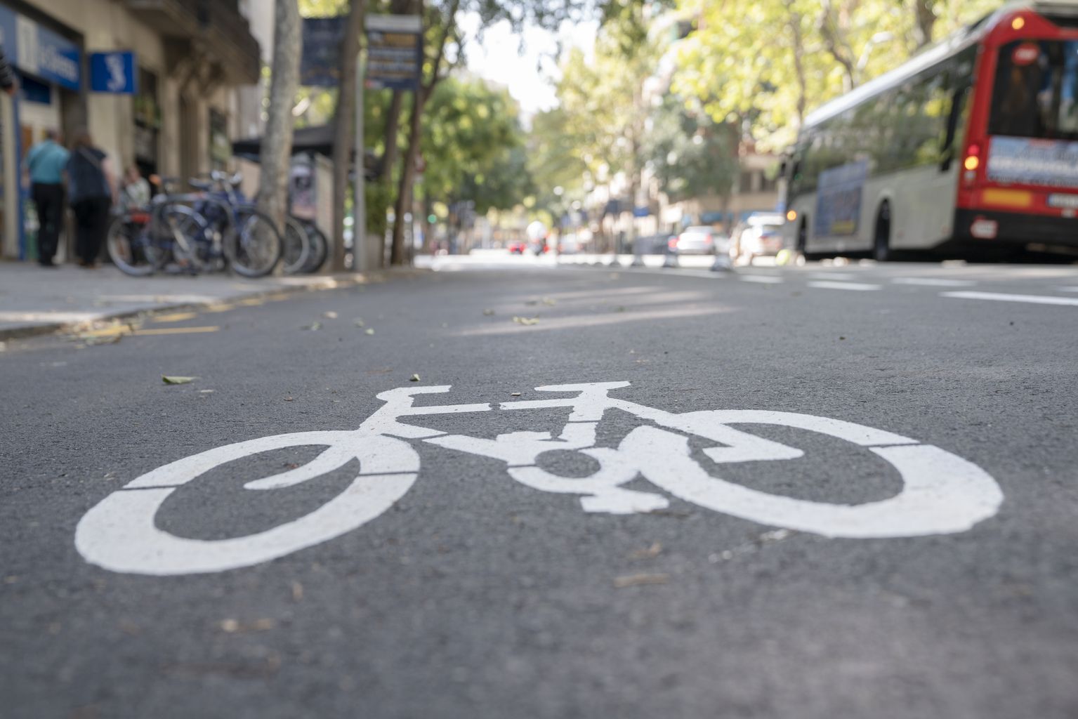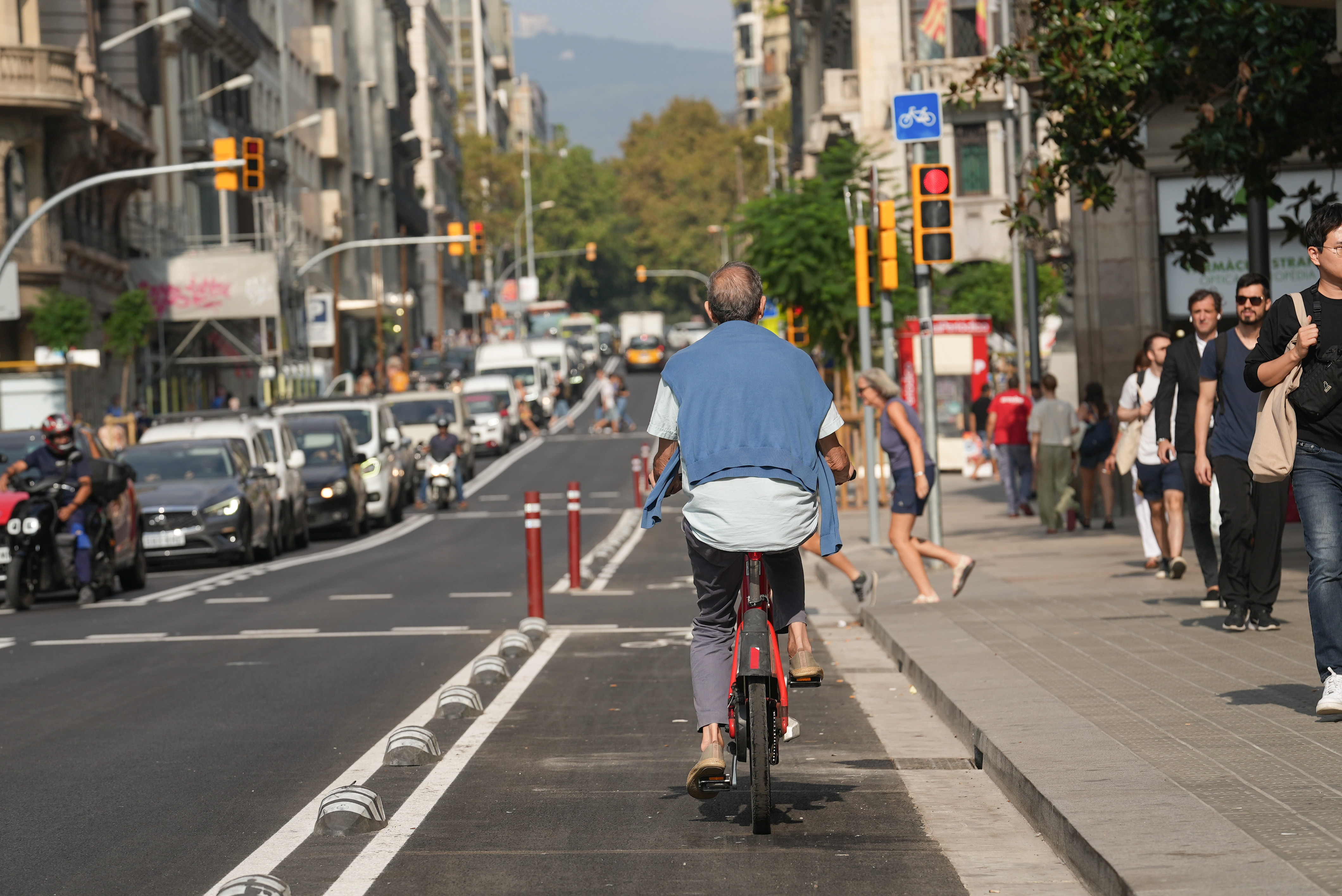 Es posa en funcionament el segon tram de carril bici de la Gran Via de les Corts Catalanes, entre el carrer de Mossèn Amadeu Oller i la plaça d’Ildefons Cerdà