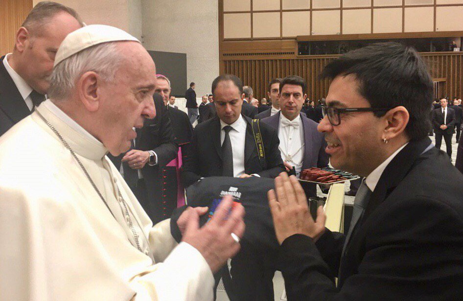 El primer tinent d’alcaldia, Gerardo Pisarello, ha estat rebut avui en audiència pública pel Papa Francesc en una breu trobada on han compartit la conveniència de promoure el diàleg entre religions i conviccions diverses i impulsar una internacional humanista per reivindicar la vigència dels valors que van inspirar la Declaració Universal dels Drets Humans, aprovada ara fa 70 anys, i per defensar la necessitat que aquests principis adquireixin vigència efectiva i quan noves amenaces posen en risc els drets humans i la supervivència del planeta. Aquesta tarda, el primer tinent d’alcaldia mantindrà també una reunió amb un equip de confiança del Pontífex per aprofundir en aquest objectiu comú. La visita continua la reunió que fa uns dies l’alcaldessa va mantenir amb el Sant Pare.