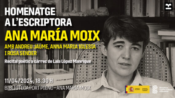 Dijous, 11 d’abril, a les 18.30 h, a la Biblioteca Fort Pienc – Ana María Moix, Biblioteques de Barcelona i el Districte de l’Eixample homenatjaran a Ana María Moix, una poeta excepcional: irònica i tendra, melancòlica i provocadora, intensament moderna.