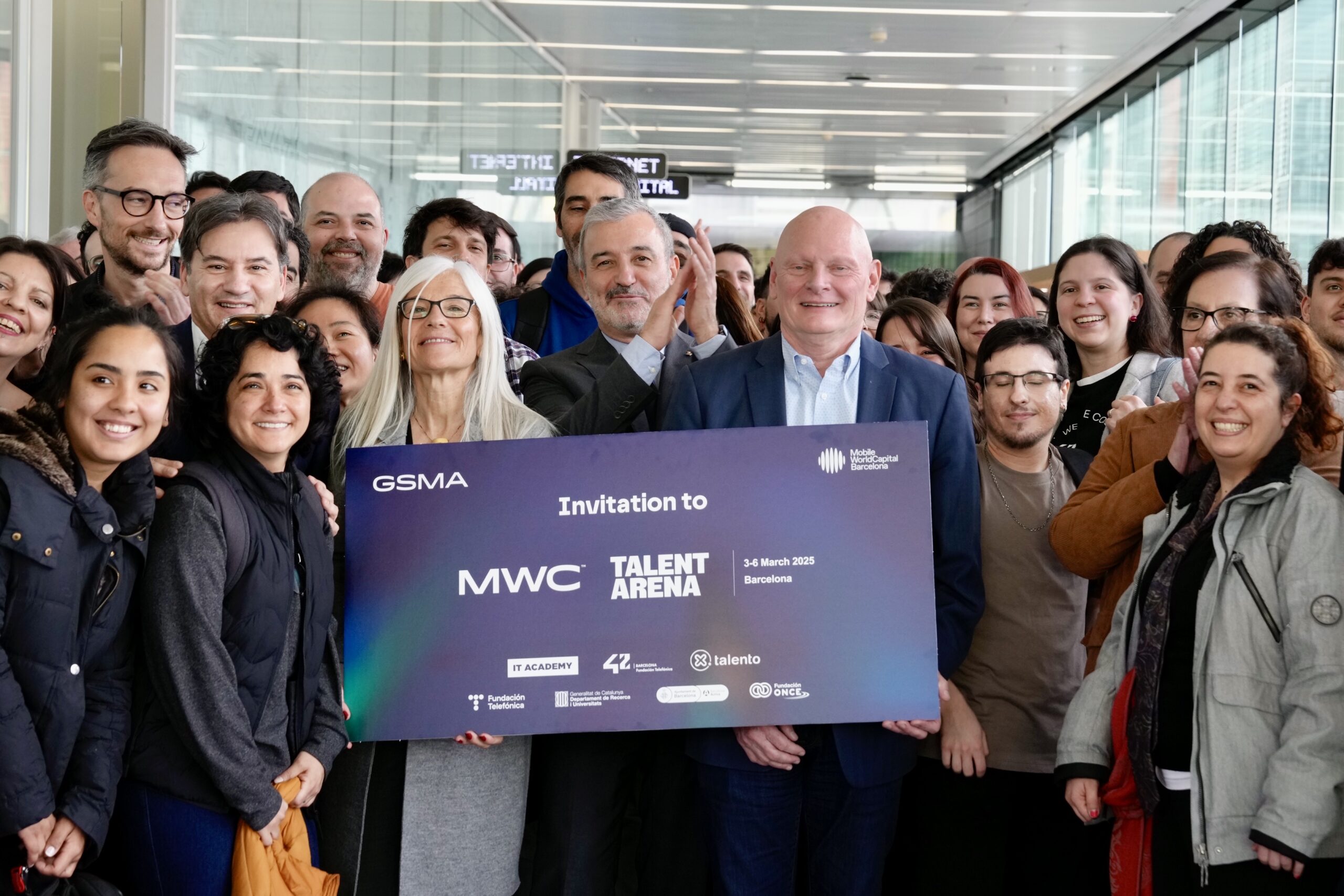 L’alcalde de Barcelona, Jaume Collboni, i el CEO de GSMA, John Hoffman, han visitat aquest migdia el Cibernarium de Barcelona Activa amb motiu del seu 25è aniversari i s’han trobat amb 200 alumnes dels programes de formació digital de la IT Academy, 42 Barcelona i XTalento.