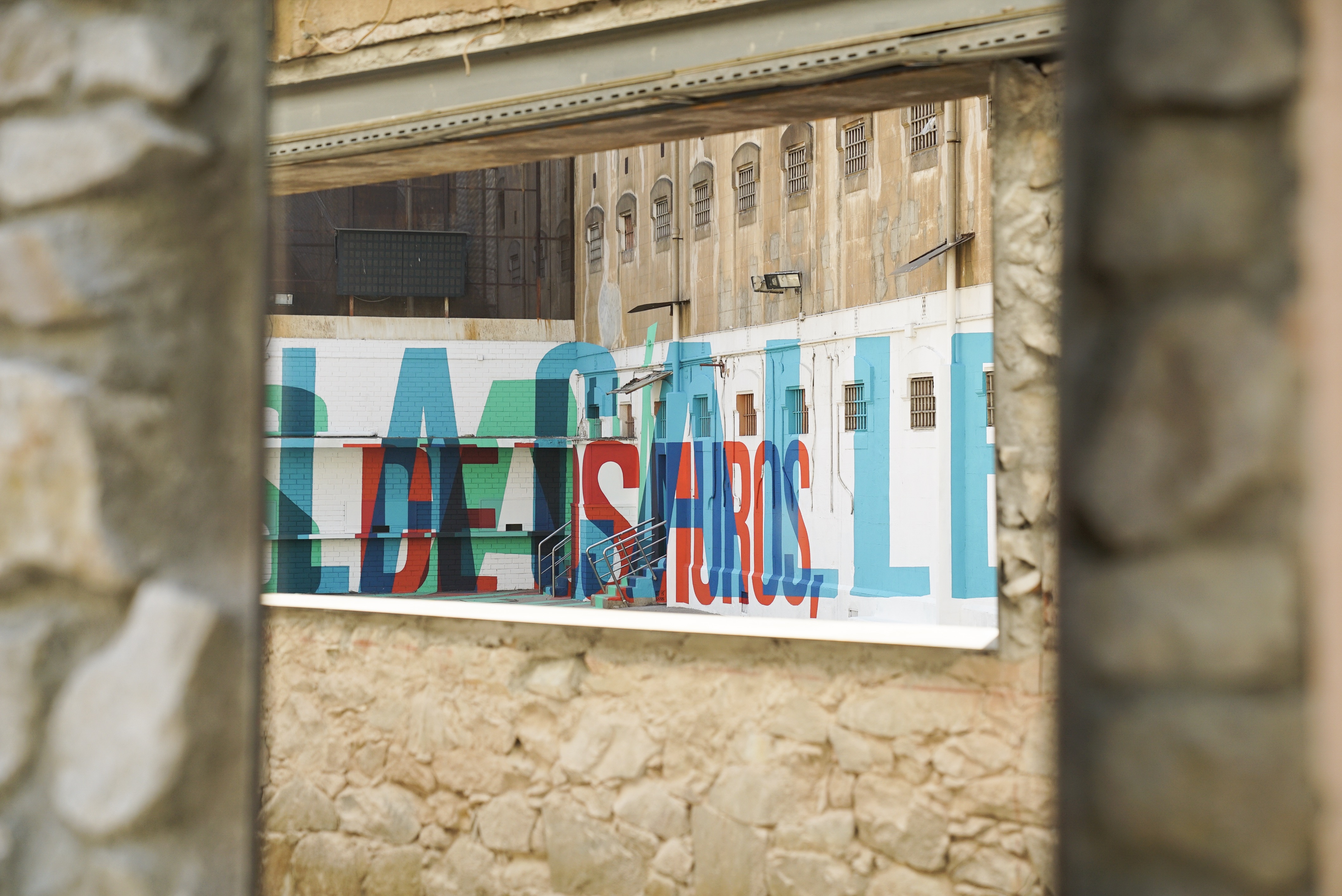 La Model, cada cop més oberta a la ciutadania. Des d’aquest dilluns, s’han estrenat al mur perimetral del carrer del Rosselló tres noves finestres que permeten observar, des del carrer, l’interior del pati de la quarta galeria. Però no només això, ja que al pati s’hi ha fet una intervenció artística que dibuixa la frase ‘Más allá de los muros, la calle’, que vol jugar amb el passat i amb el present i futur de l’antic centre penitenciari, cada cop més consolidat com a nou espai ciutadà i d’activitats.
