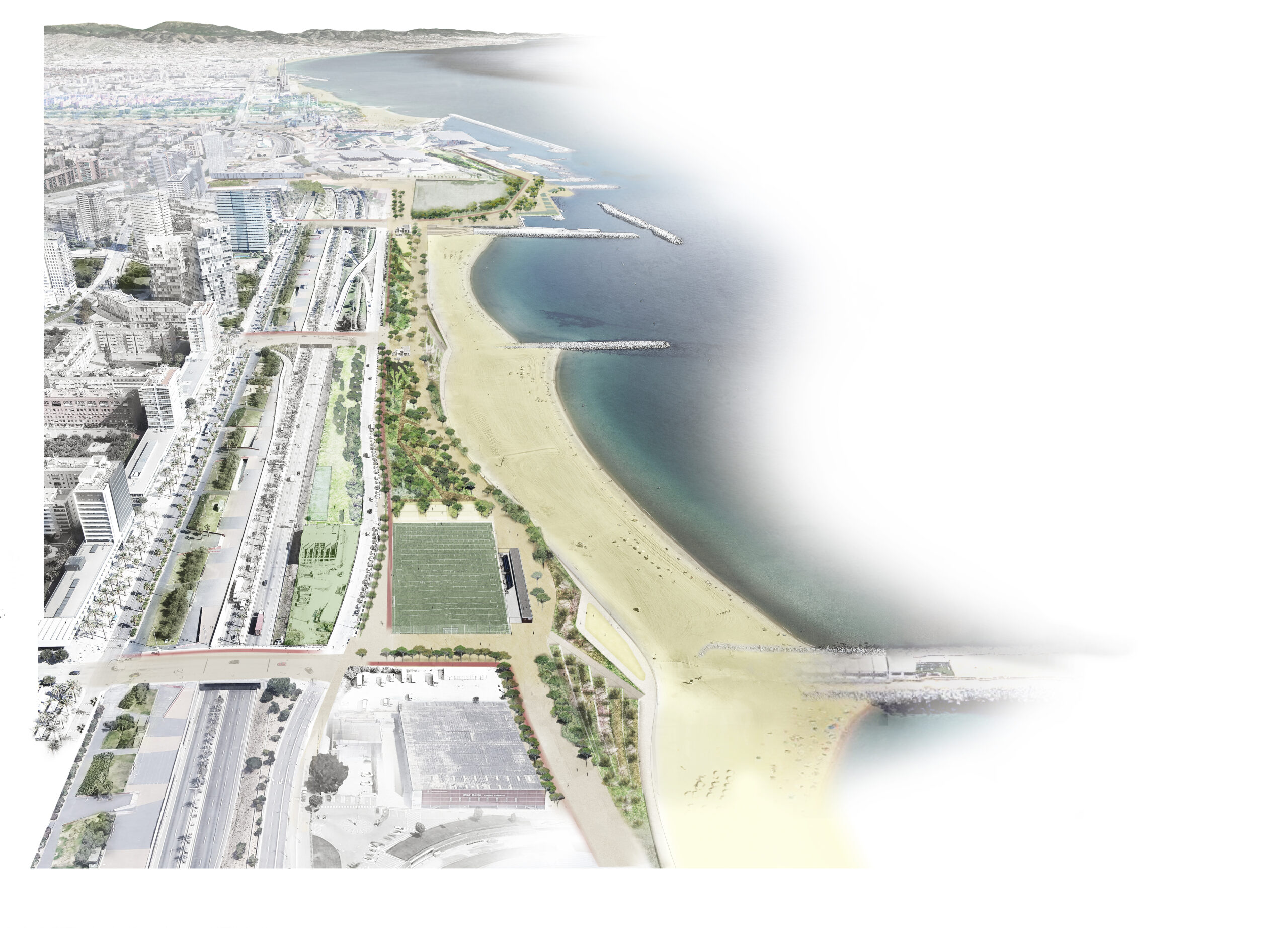 Barcelona projecta un nou gran passeig verd a la Mar Bella, naturalitzat i adaptat al canvi climàtic que millorarà la connexió amb el litoral dels barris de Diagonal Mar i el Front Marítim del Poblenou i el Besòs i el Maresme.