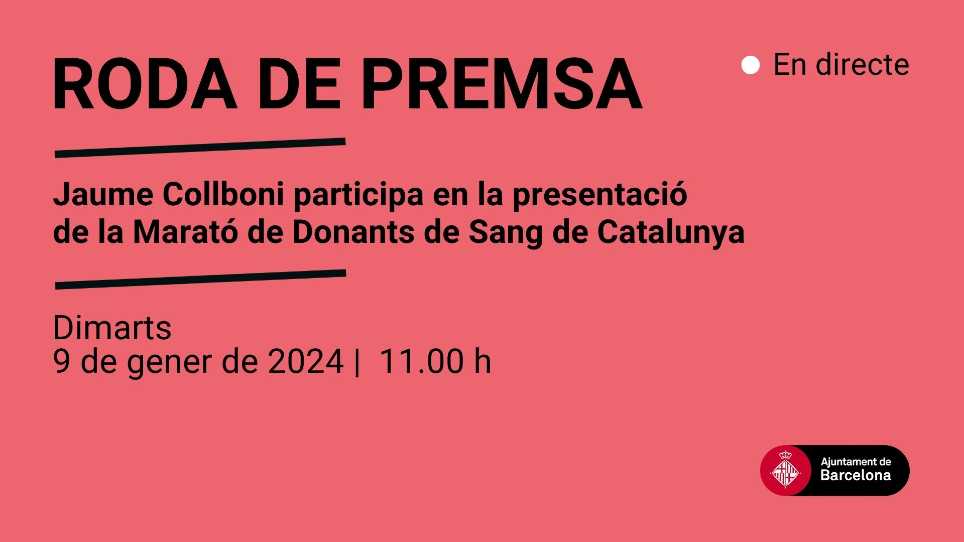 Dimarts 9 de gener, a les 11.00 hores, a la Sala Lluís Companys (Ajuntament de Barcelona)