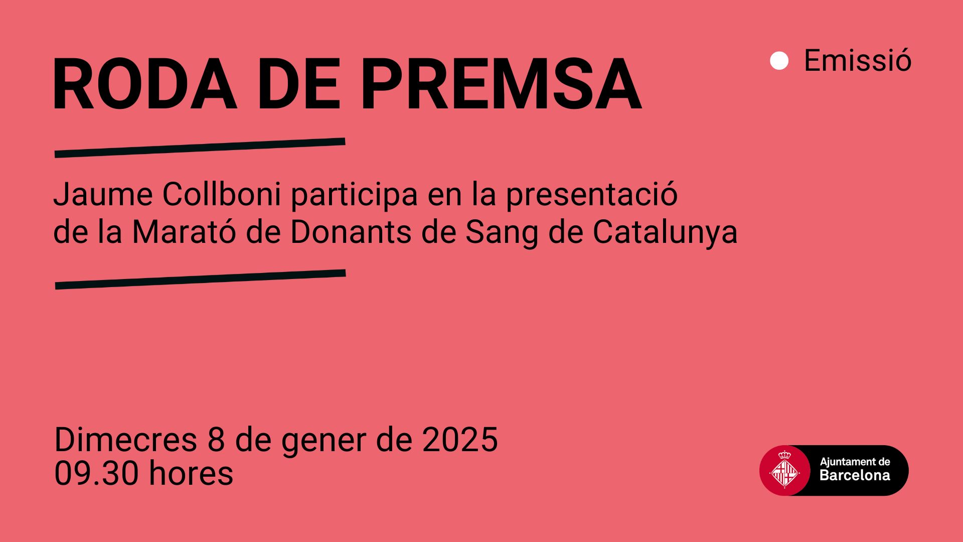 Dimecres 8 de gener, a les 9.30 hores (Sala Lluís Companys, Ajuntament de Barcelona)